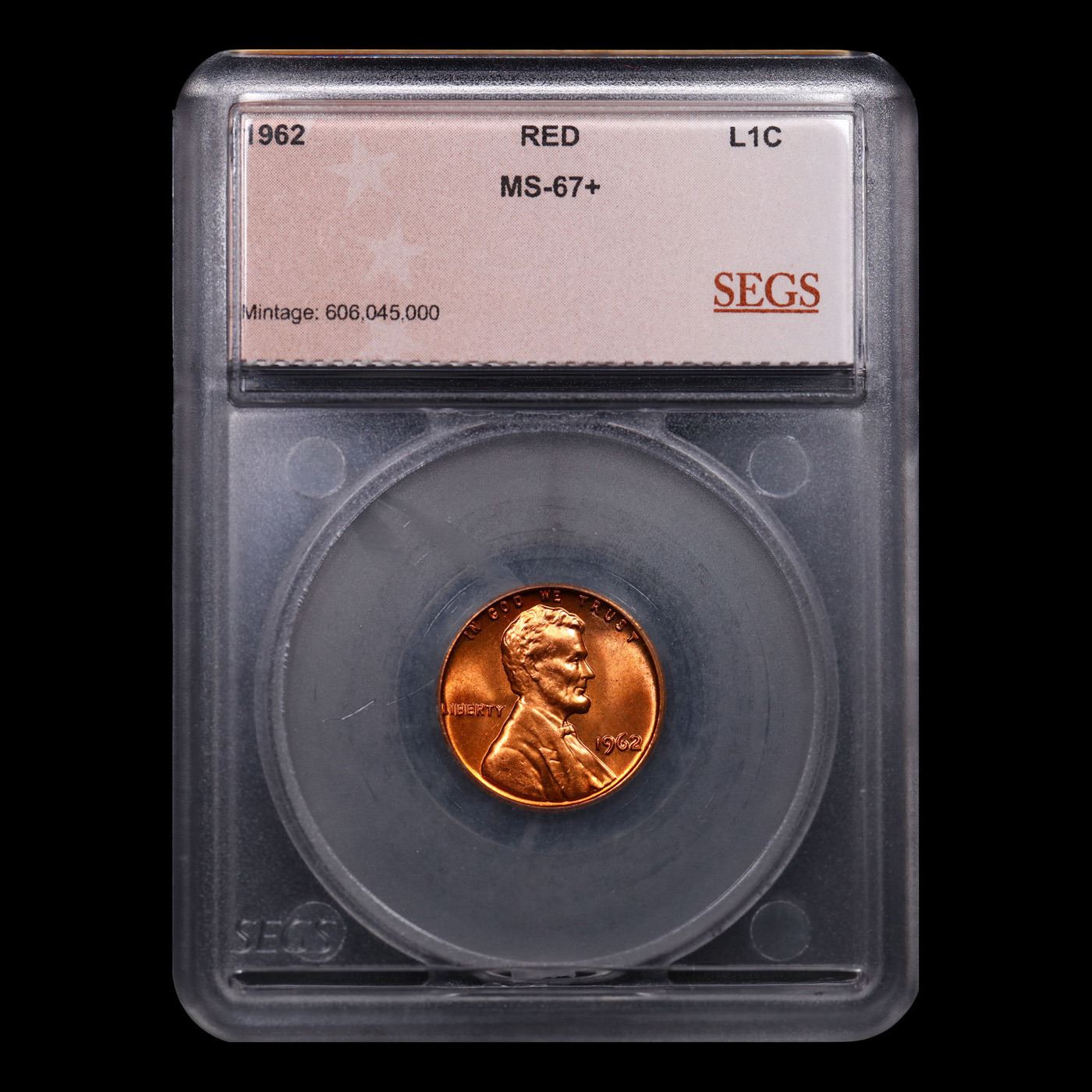 ***Auction Highlight*** 1962-p Lincoln Cent Near TOP POP! 1c Graded ms67+ rd BY SEGS (fc)