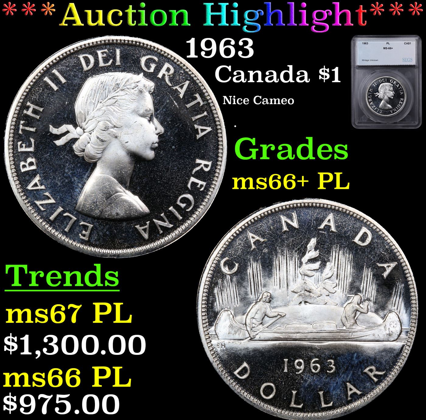***Auction Highlight*** 1963 Canada Dollar $1 Graded ms66+ PL By SEGS.