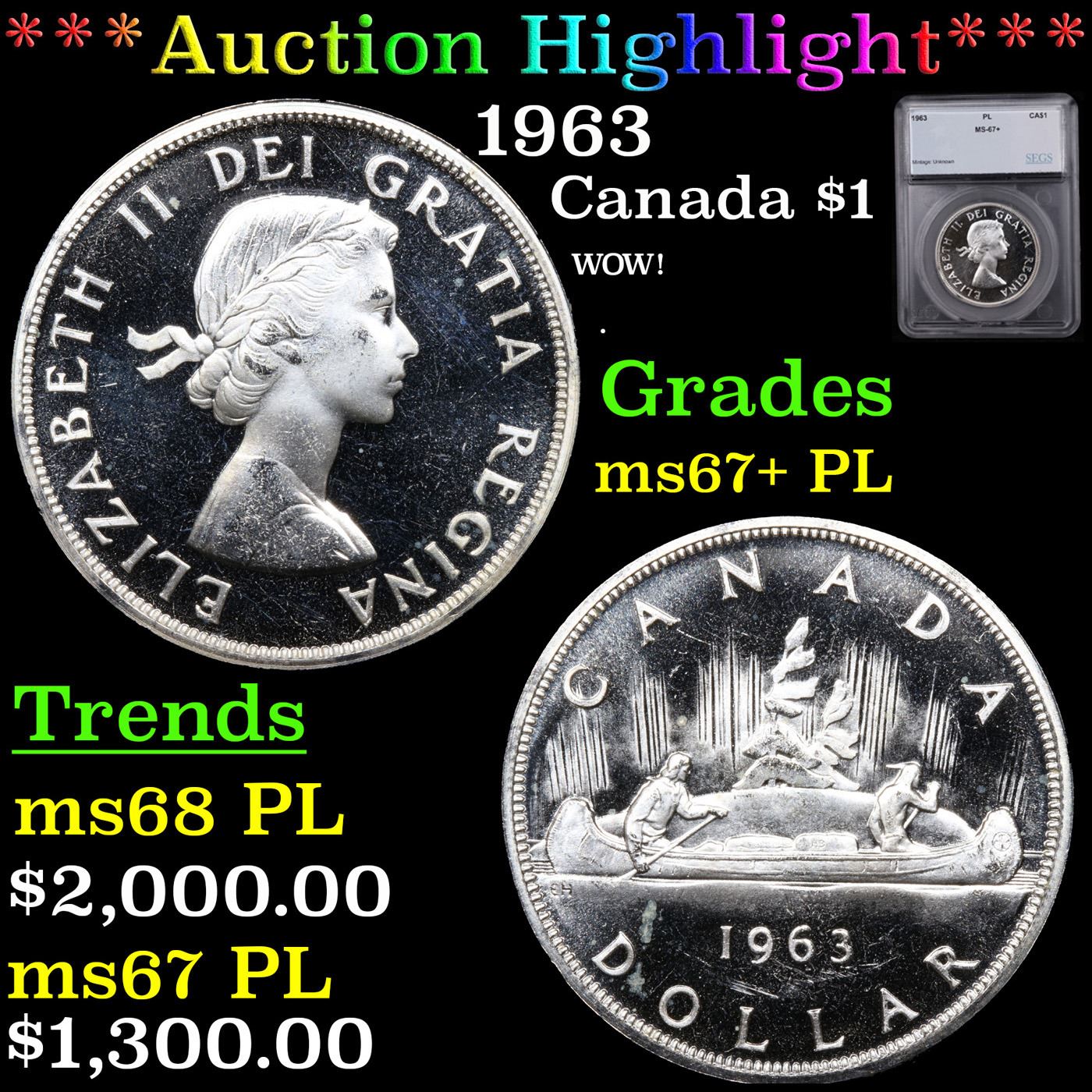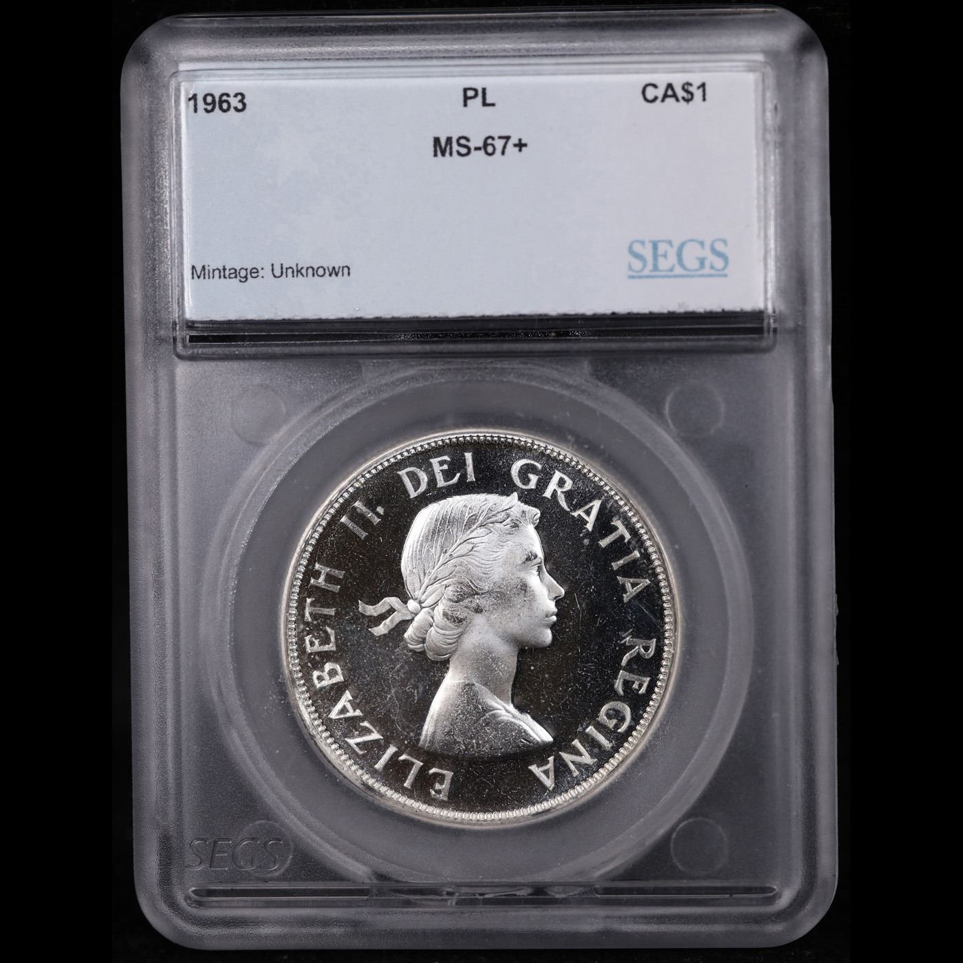 ***Auction Highlight*** 1963 Canada Dollar $1 Graded ms67+ PL By SEGS.