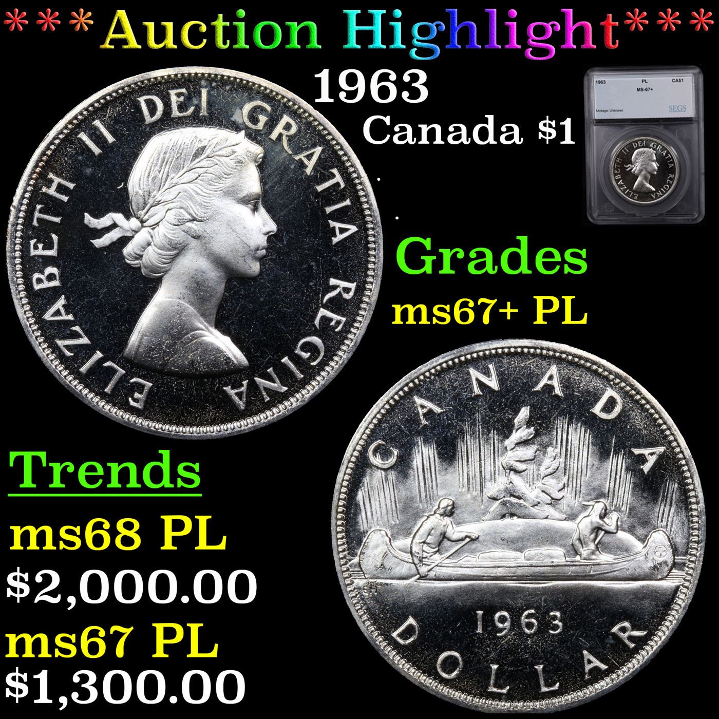 ***Auction Highlight*** 1963 Canada Dollar $1 Graded ms67+ PL By SEGS.