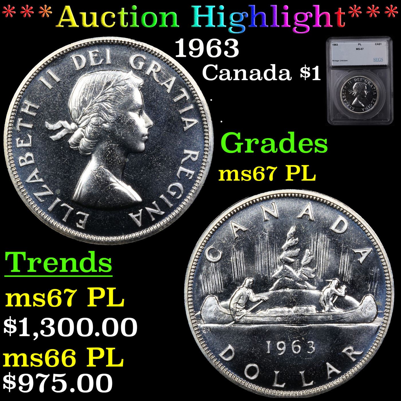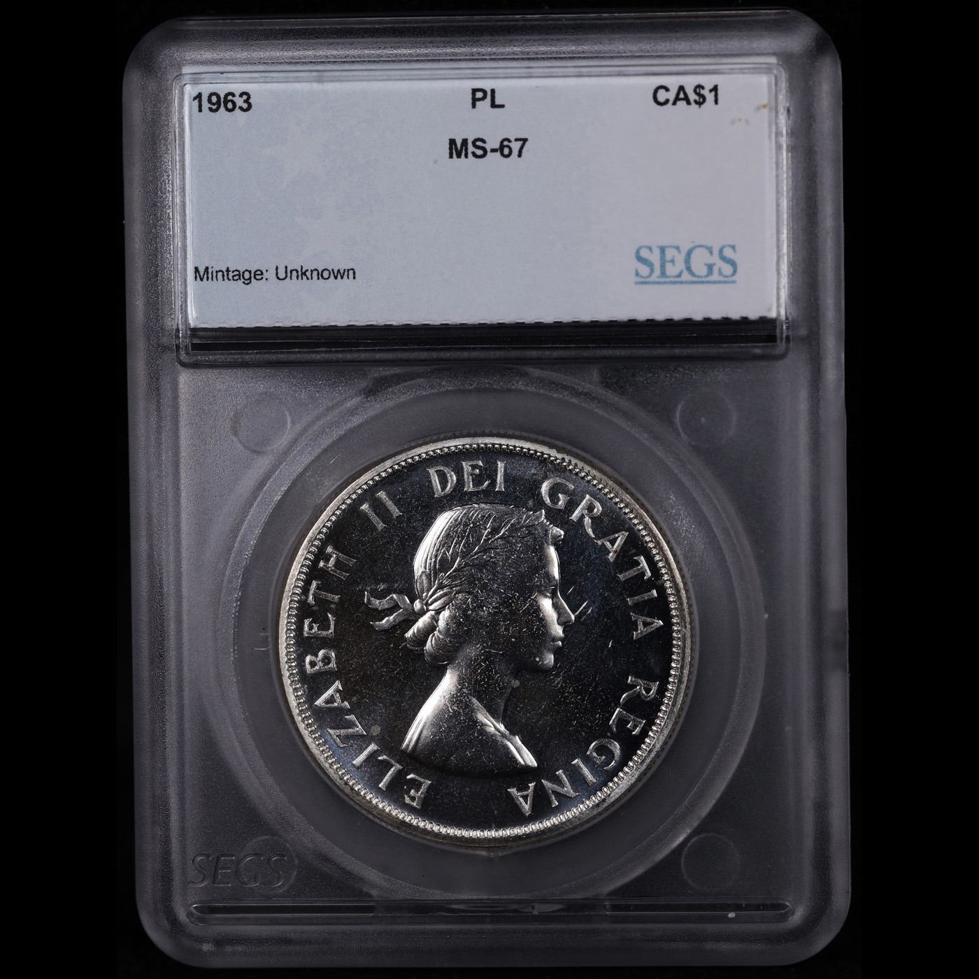 ***Auction Highlight*** 1963 Canada Dollar $1 Graded ms67 PL By SEGS.