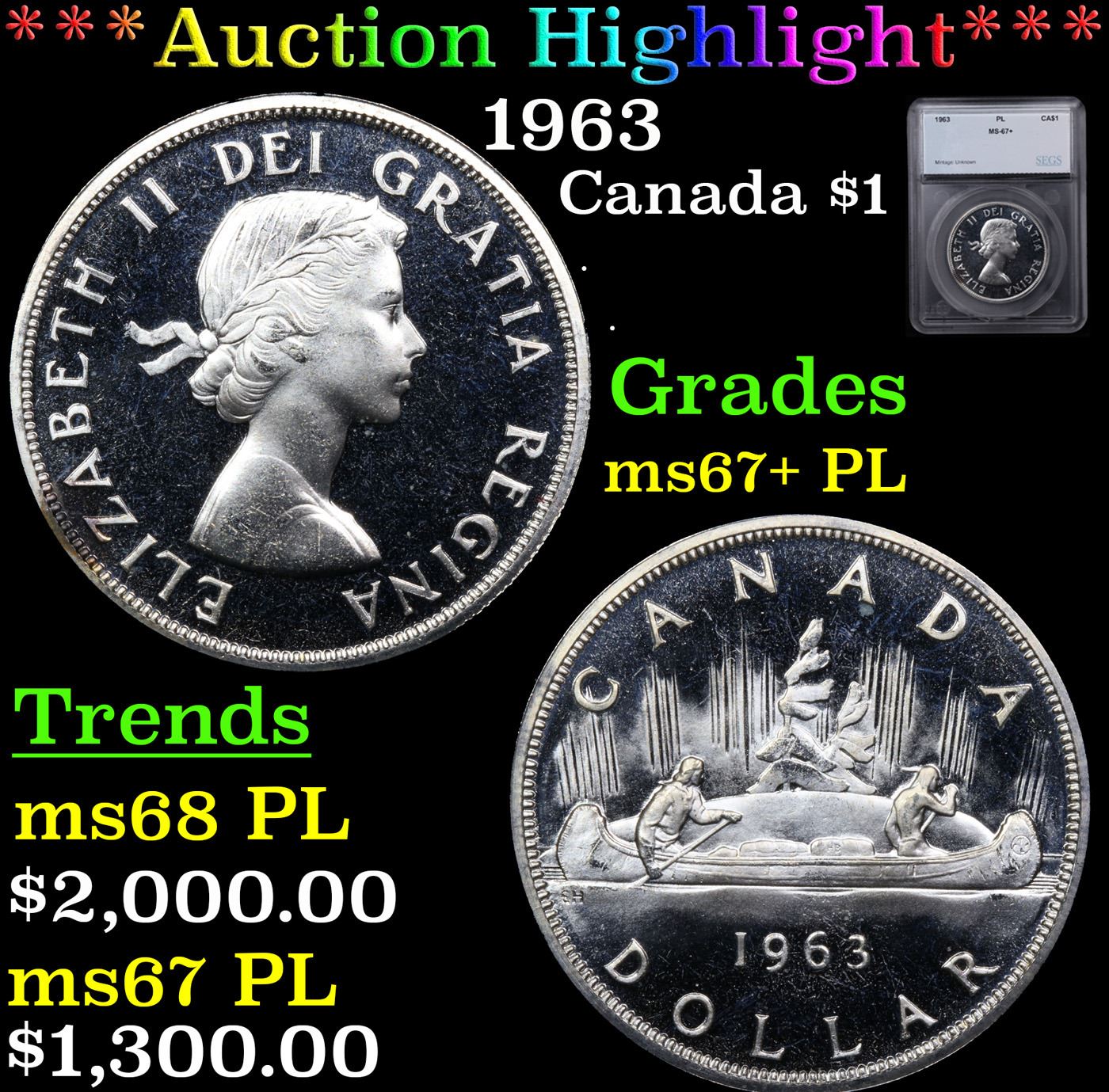 ***Auction Highlight*** 1963 Canada Dollar $1 Graded ms67+ PL By SEGS.