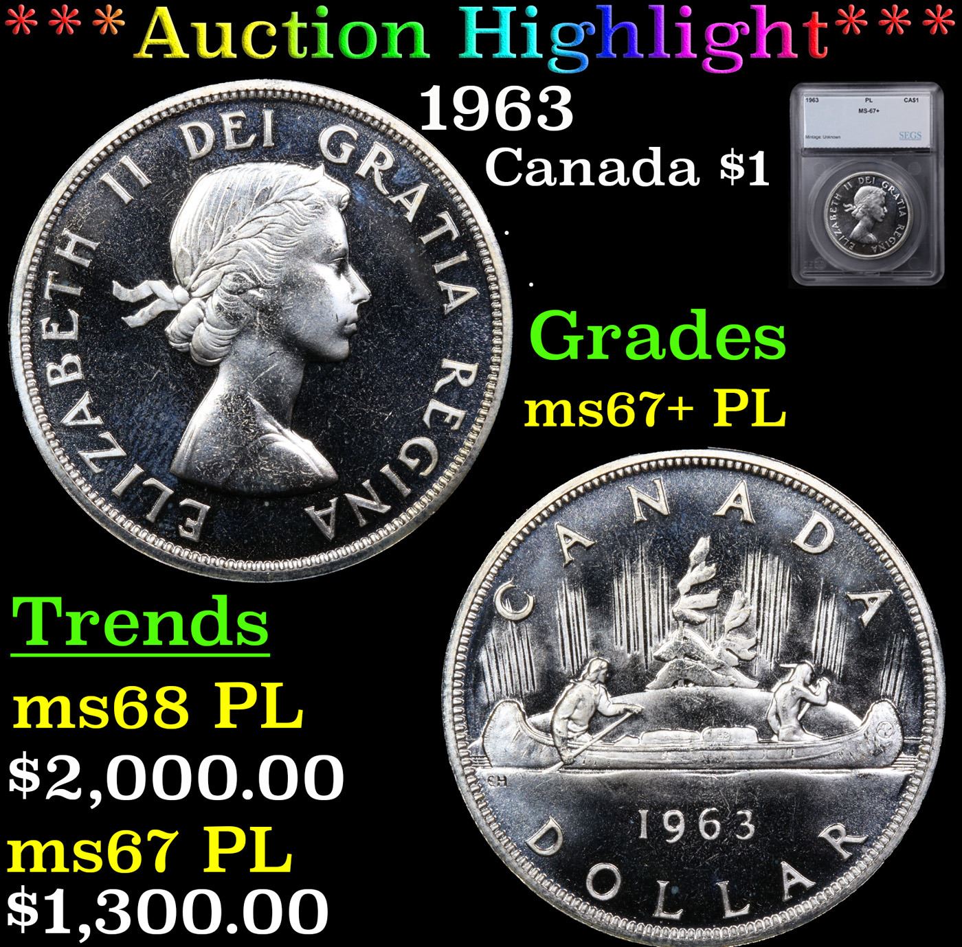 ***Auction Highlight*** 1963 Canada Dollar $1 Graded ms67+ PL By SEGS.
