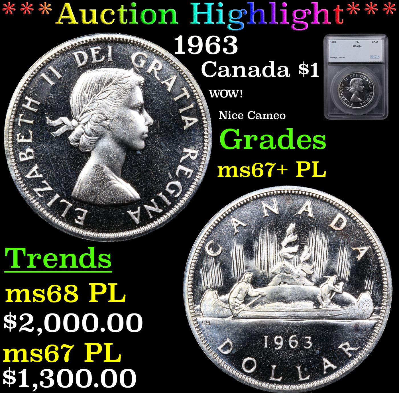 ***Auction Highlight*** 1963 Canada Dollar $1 Graded ms67+ PL By SEGS.