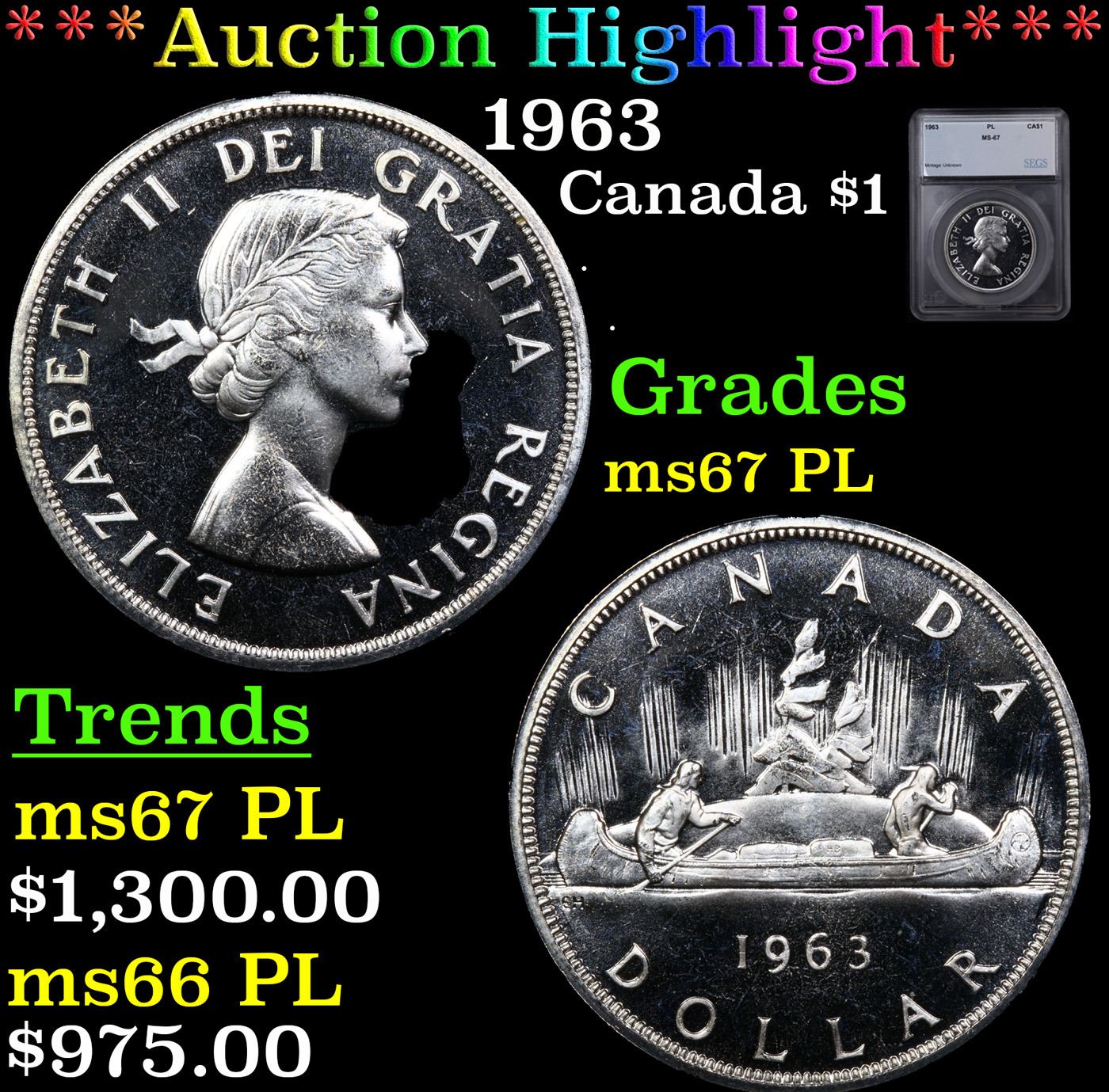 ***Auction Highlight*** 1963 Canada Dollar $1 Graded ms67 PL By SEGS.