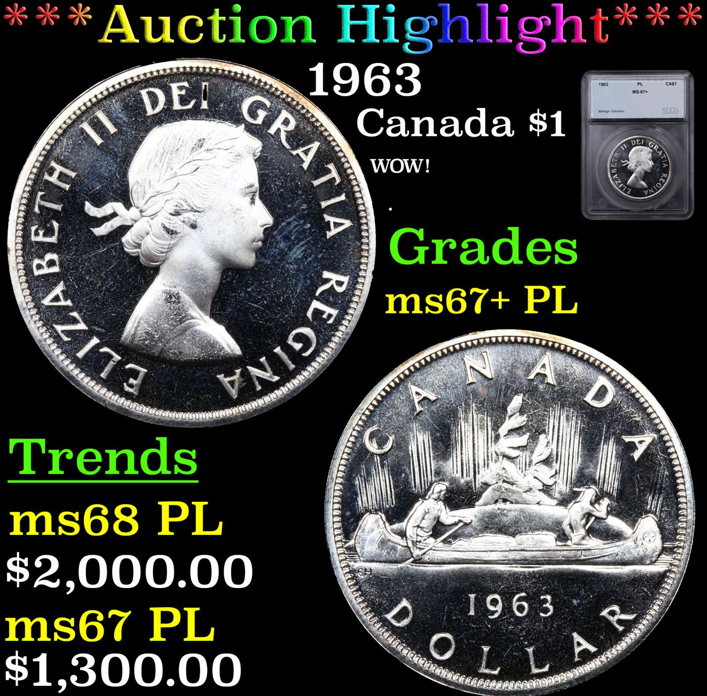 ***Auction Highlight*** 1963 Canada Dollar $1 Graded ms67+ PL By SEGS.