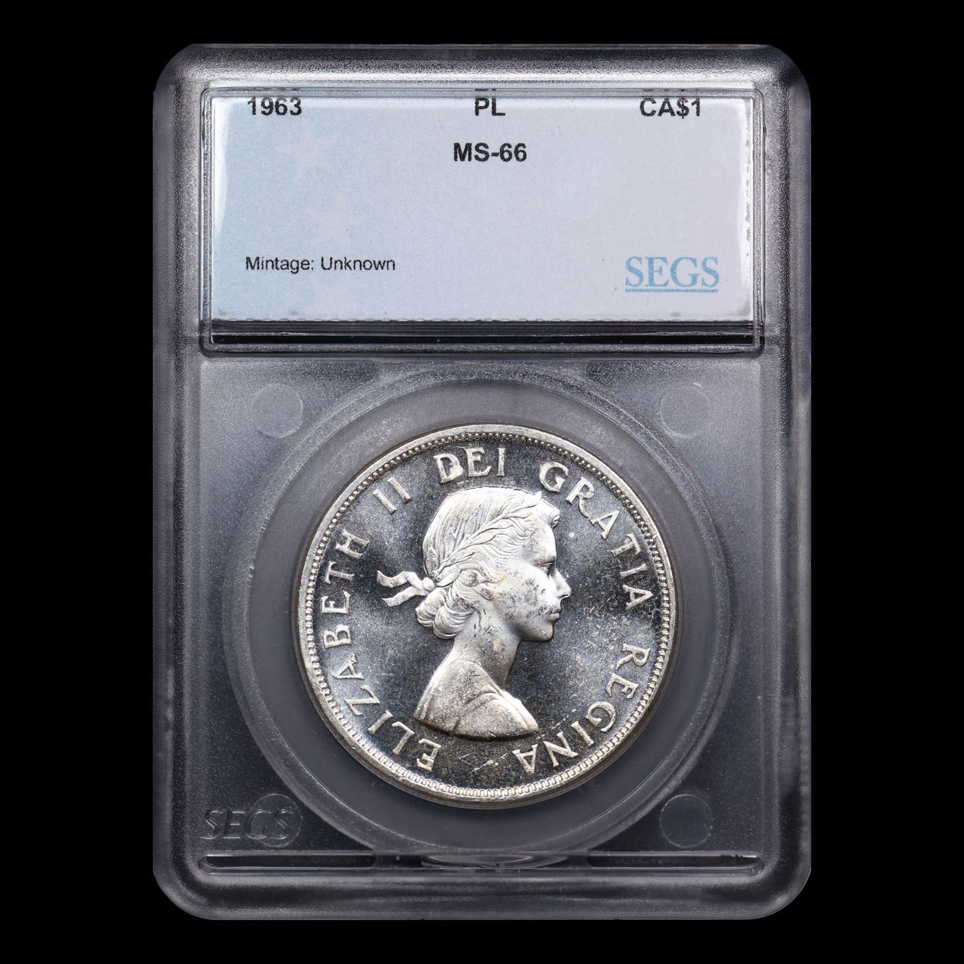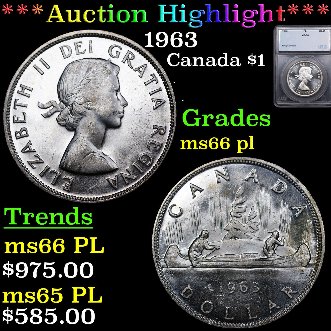 ***Auction Highlight*** 1963 Canada Dollar $1 Grades GEM+ UNC PL BY SEGS.