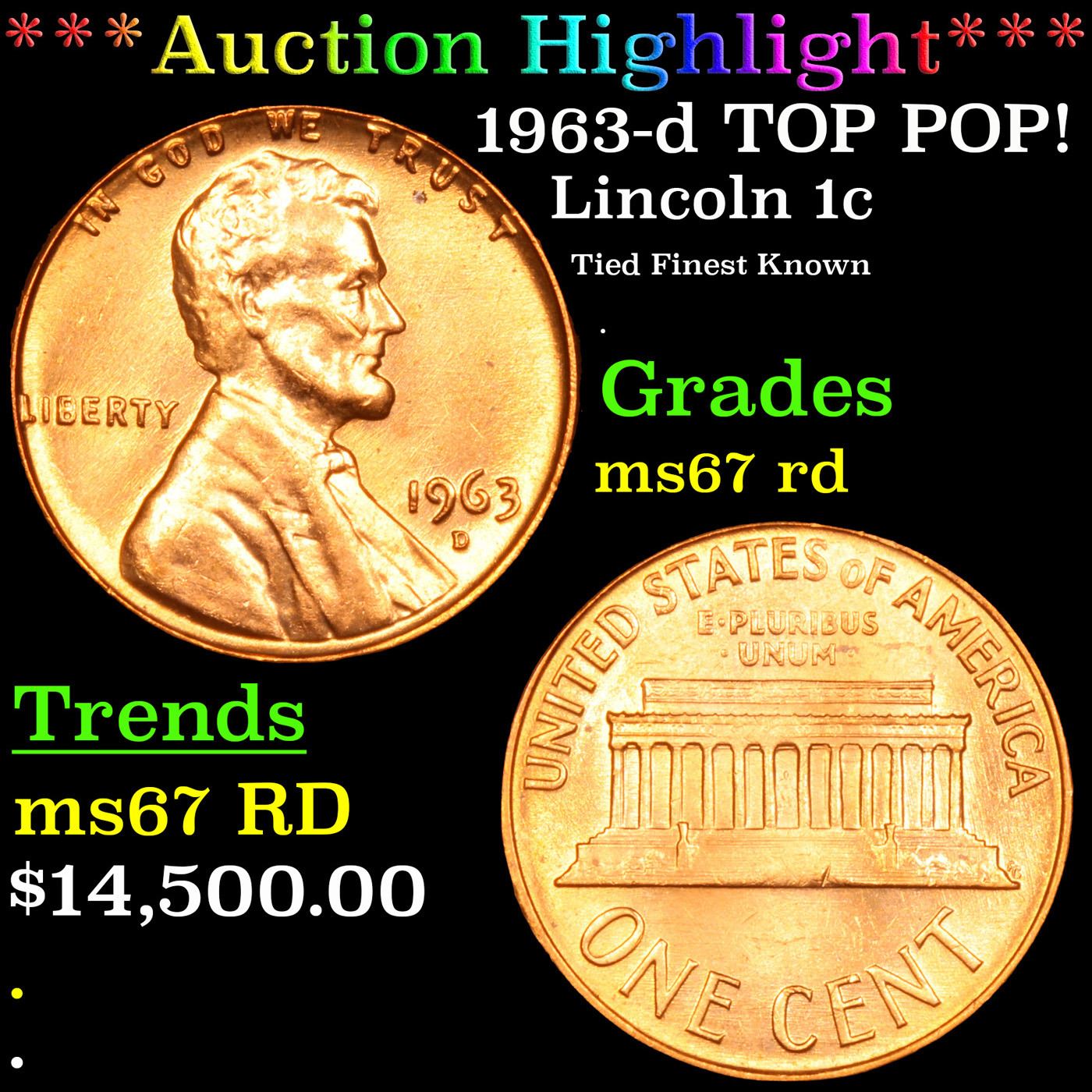 ***Auction Highlight*** 1963-d TOP POP! Lincoln Cent 1c Graded GEM++ Unc RD By USCG.