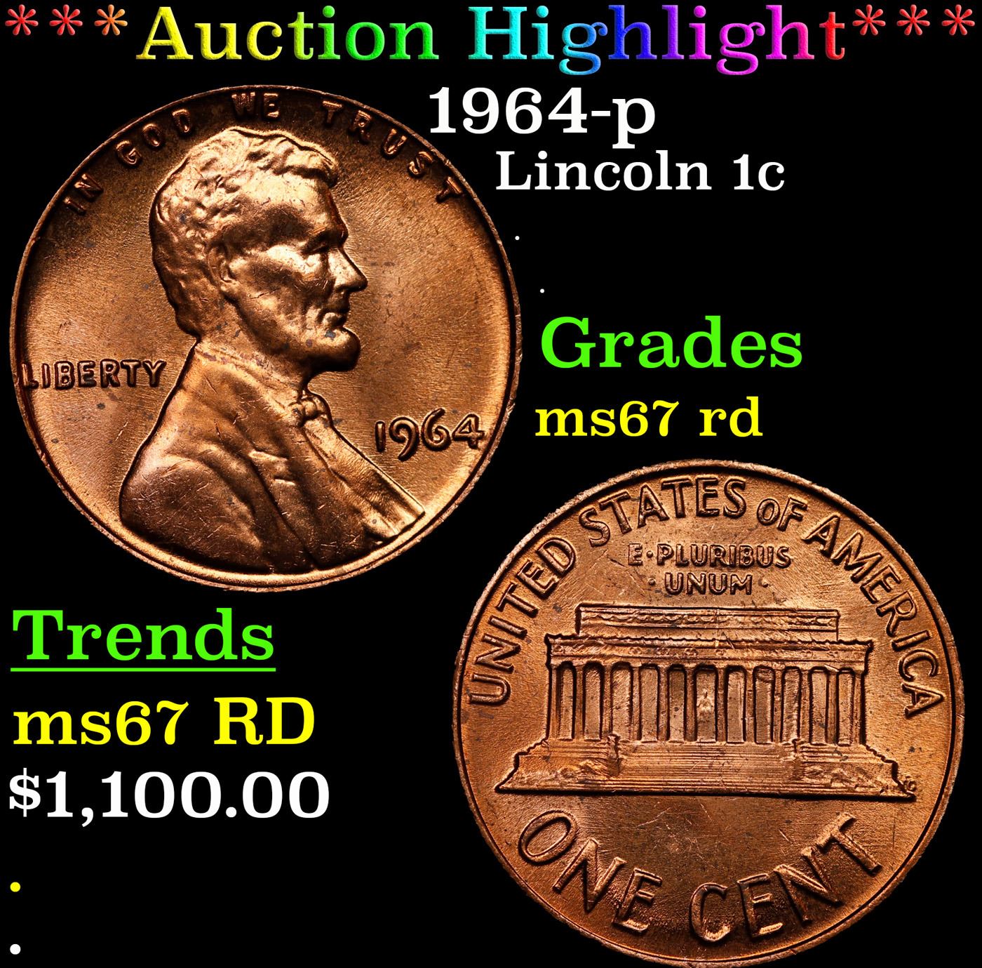 ***Auction Highlight*** 1964-p Lincoln Cent 1c Graded GEM++ Unc RD By USCG.