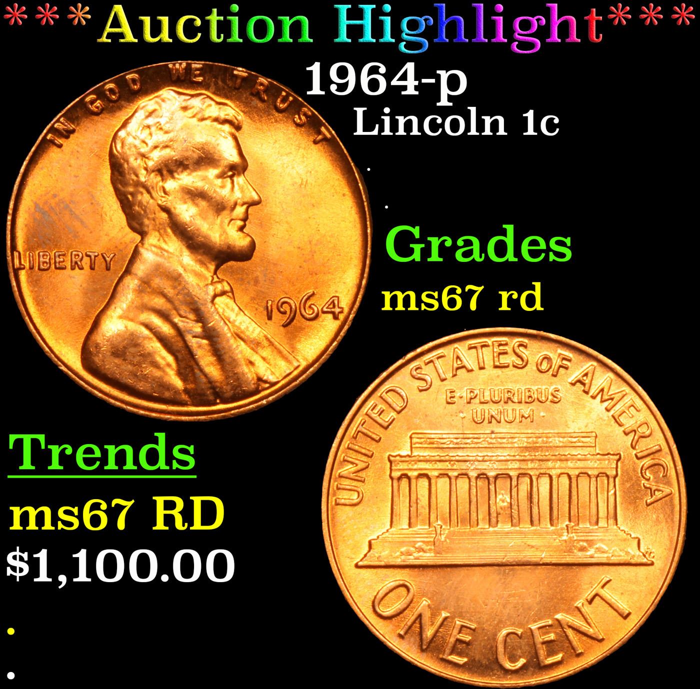 ***Auction Highlight*** 1964-p Lincoln Cent 1c Graded GEM++ Unc RD By USCG.