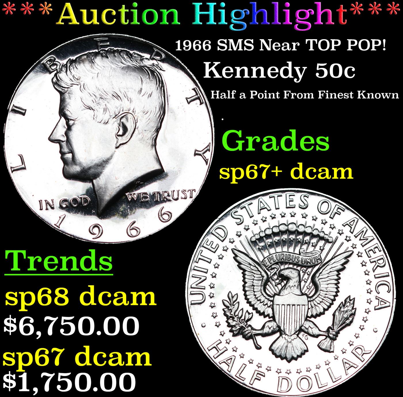 ***Auction Highlight*** 1966 SMS Near TOP POP! Kennedy Half Dollar 50c Graded sp67+ dcam BY USCG.