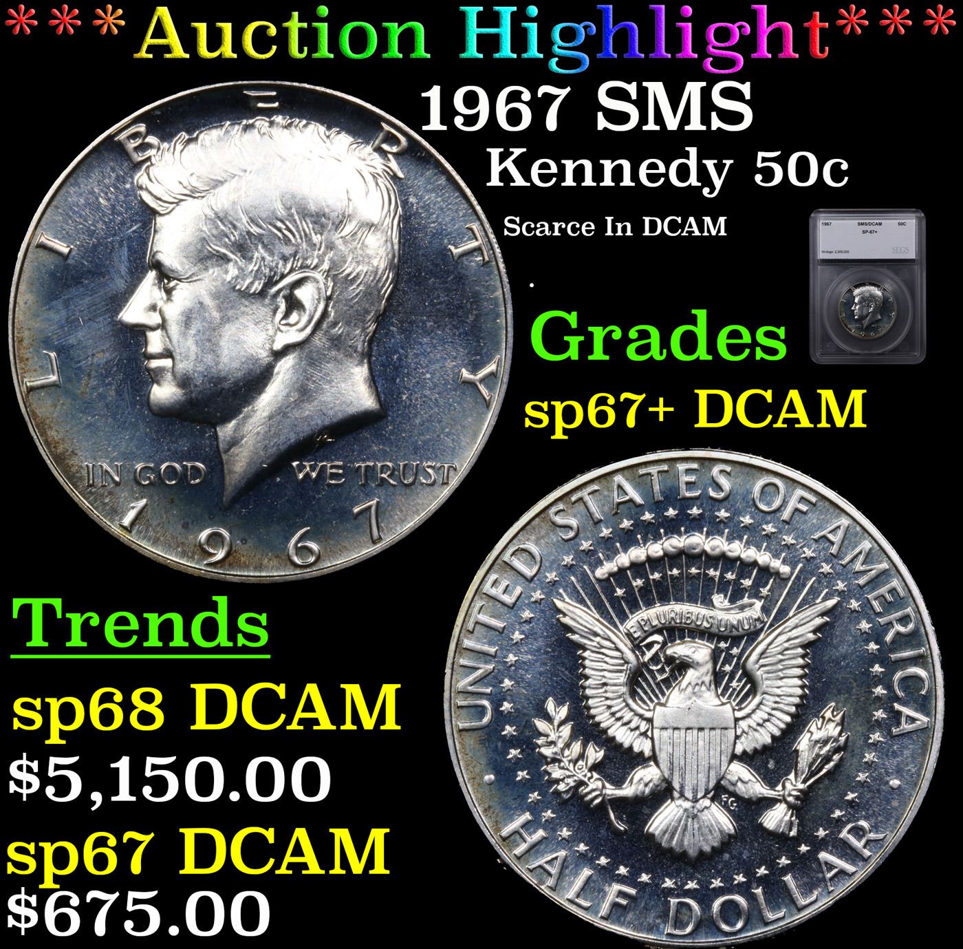 ***Auction Highlight*** 1967 SMS Kennedy Half Dollar 50c Graded sp67+ DCAM BY SEGS. A Key Date's Pick, Bid to Win, Don't let it get Away Coin