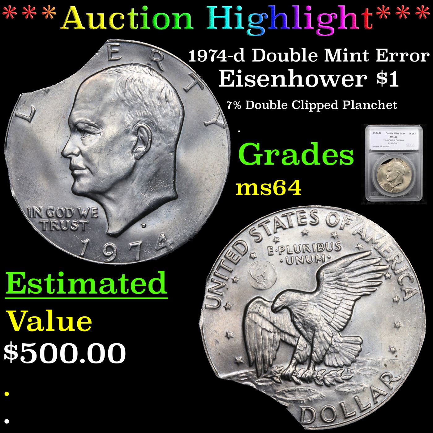 ***Auction Highlight*** 1974-d Double Mint Error Eisenhower Dollar $1 Graded ms64 By SEGS (fc)