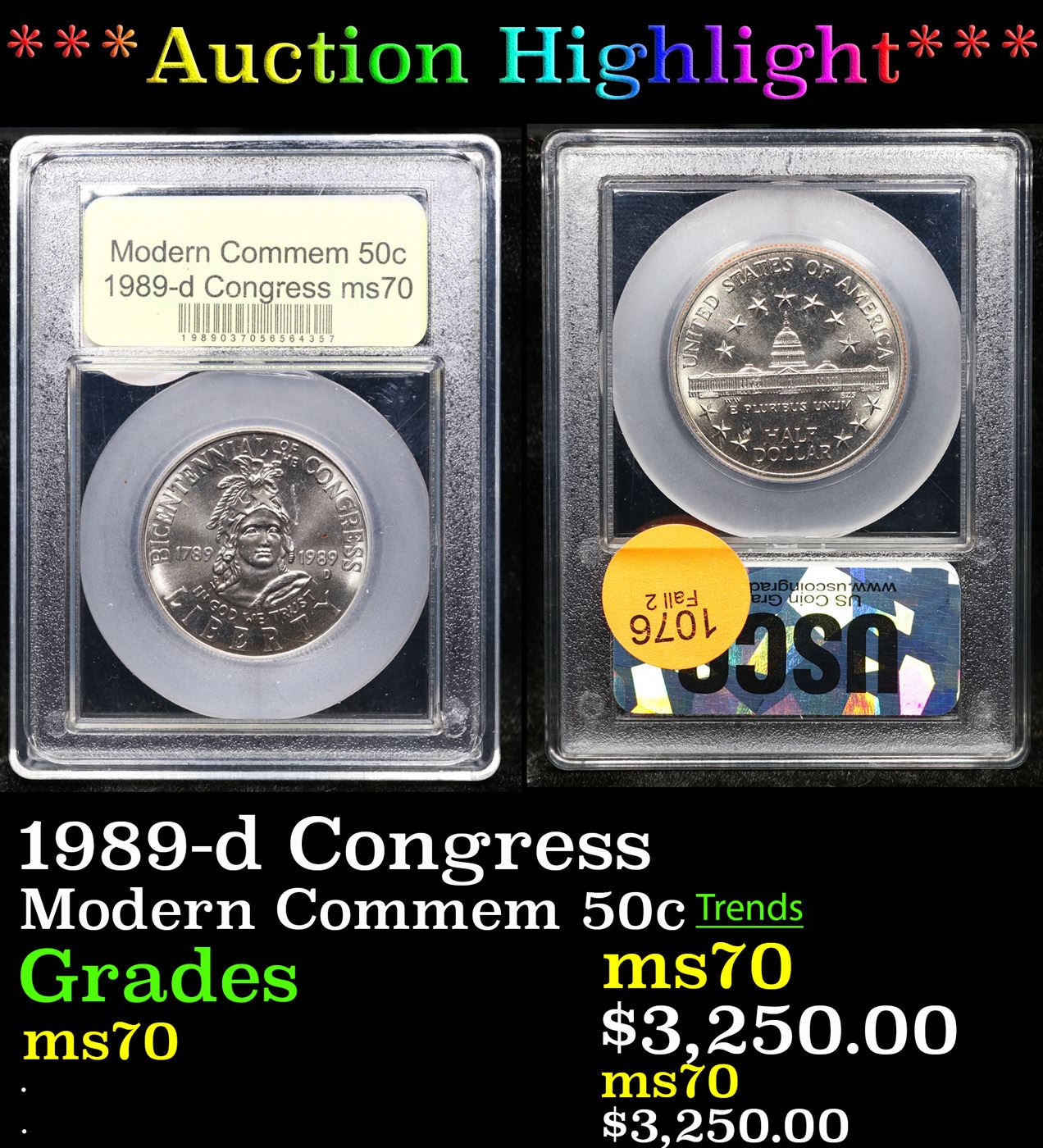 ***Auction Highlight*** 1989-d Congress Modern Commem Half Dollar 50c Graded ms70, Perfection By USC