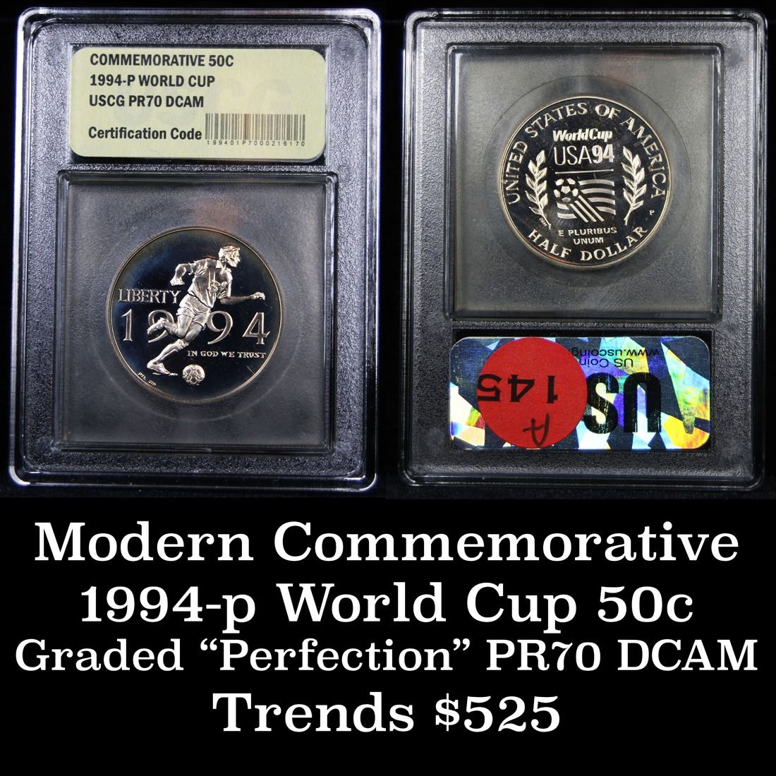 ***Auction Highlight*** 1994-p World Cup Moden Commem Half 50c Graded GEM++ Proof Deep Cameo By USCG.