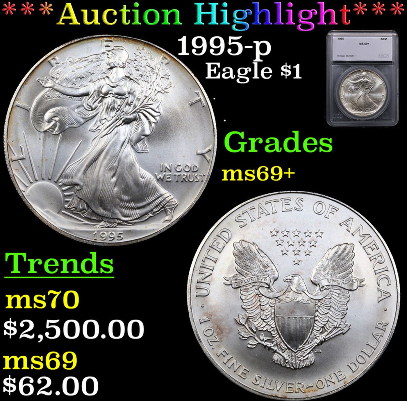 ***Auction Highlight*** 1995-p Silver Eagle Dollar $1 Graded ms69+ By SEGS.