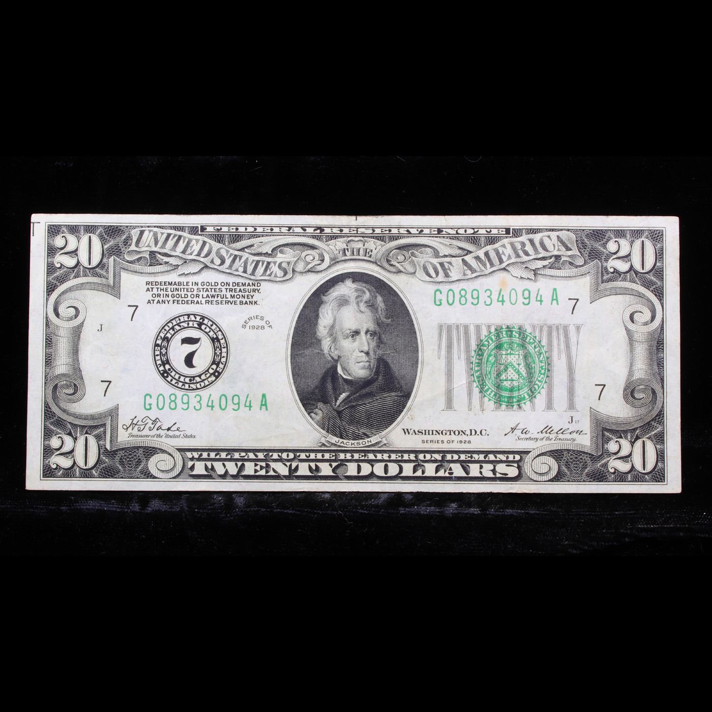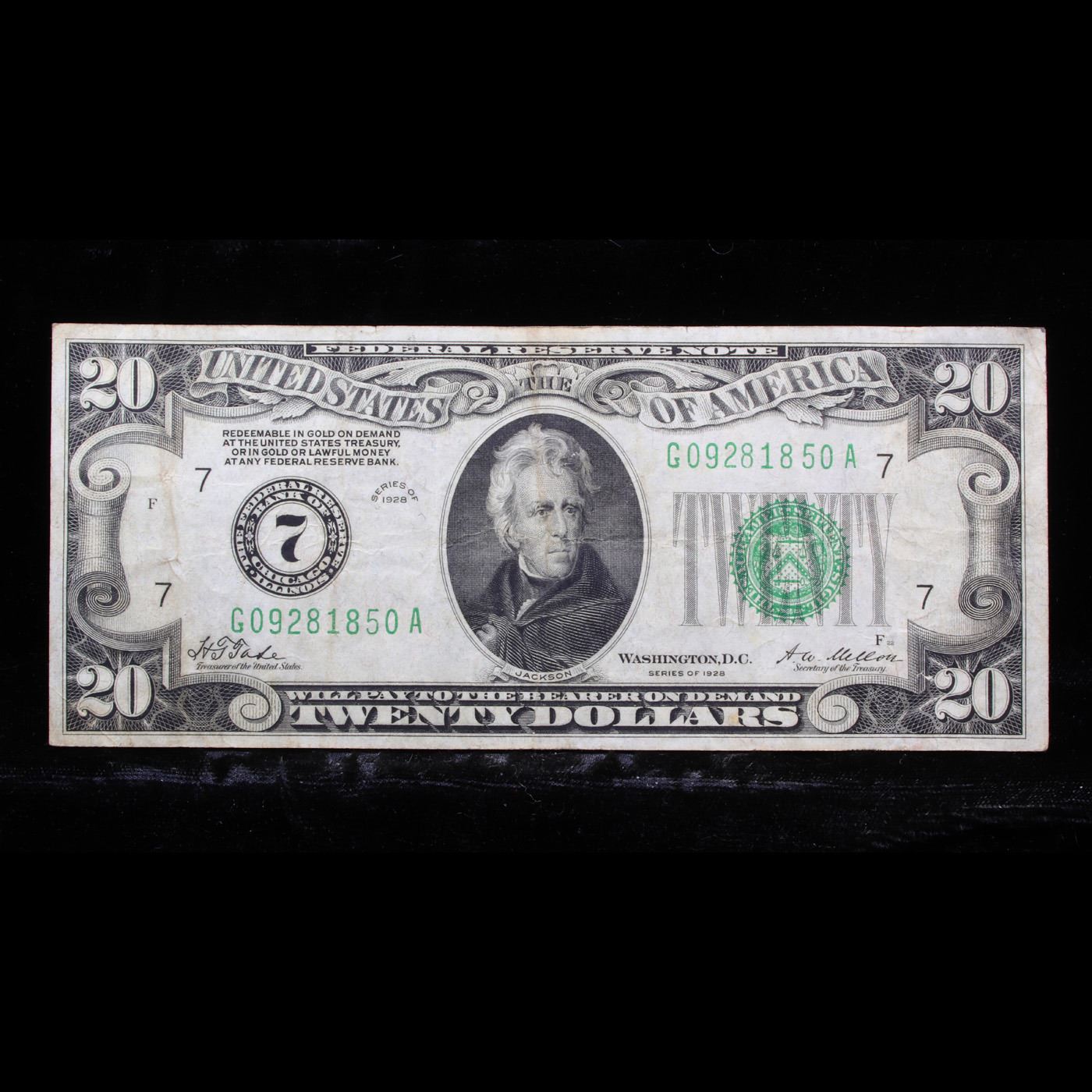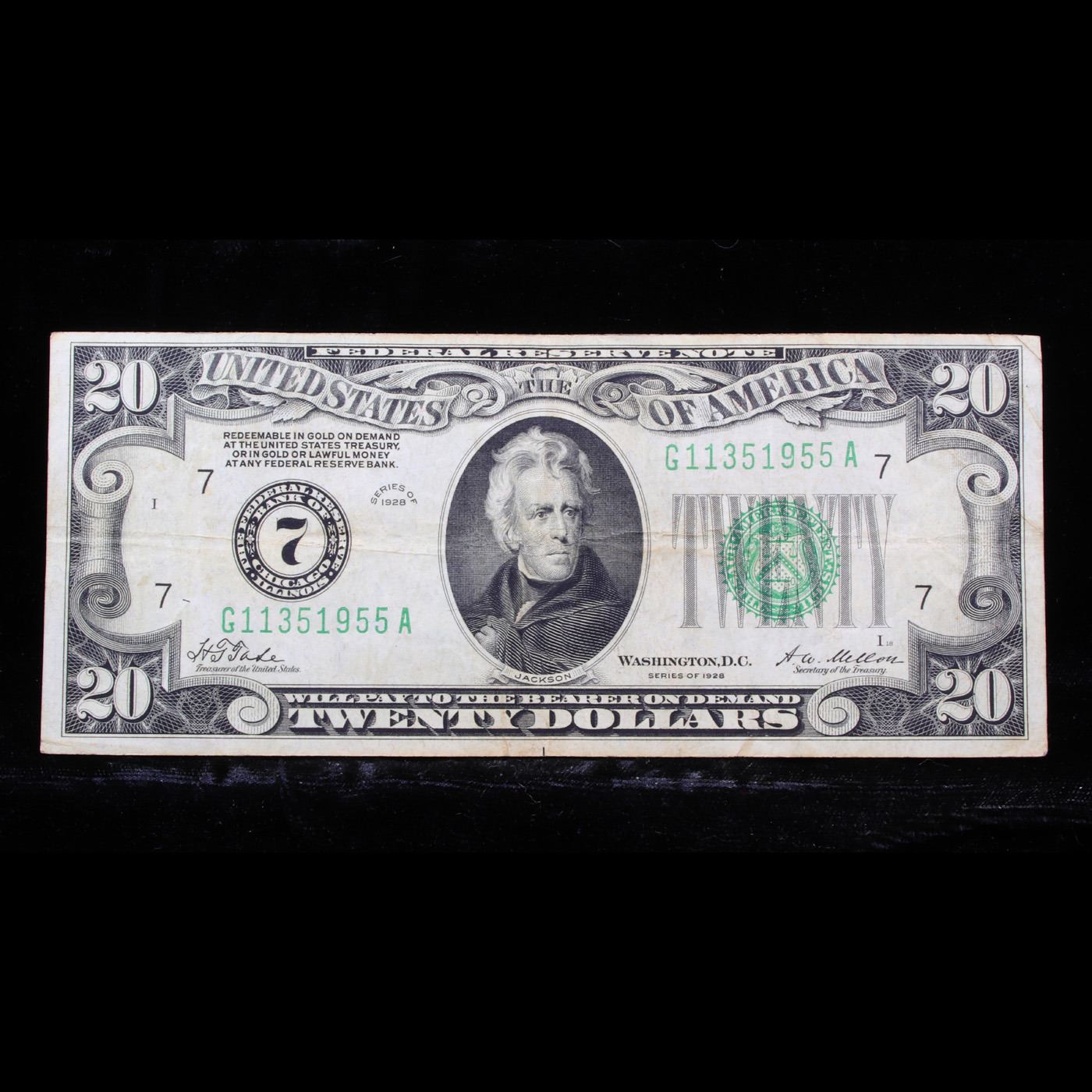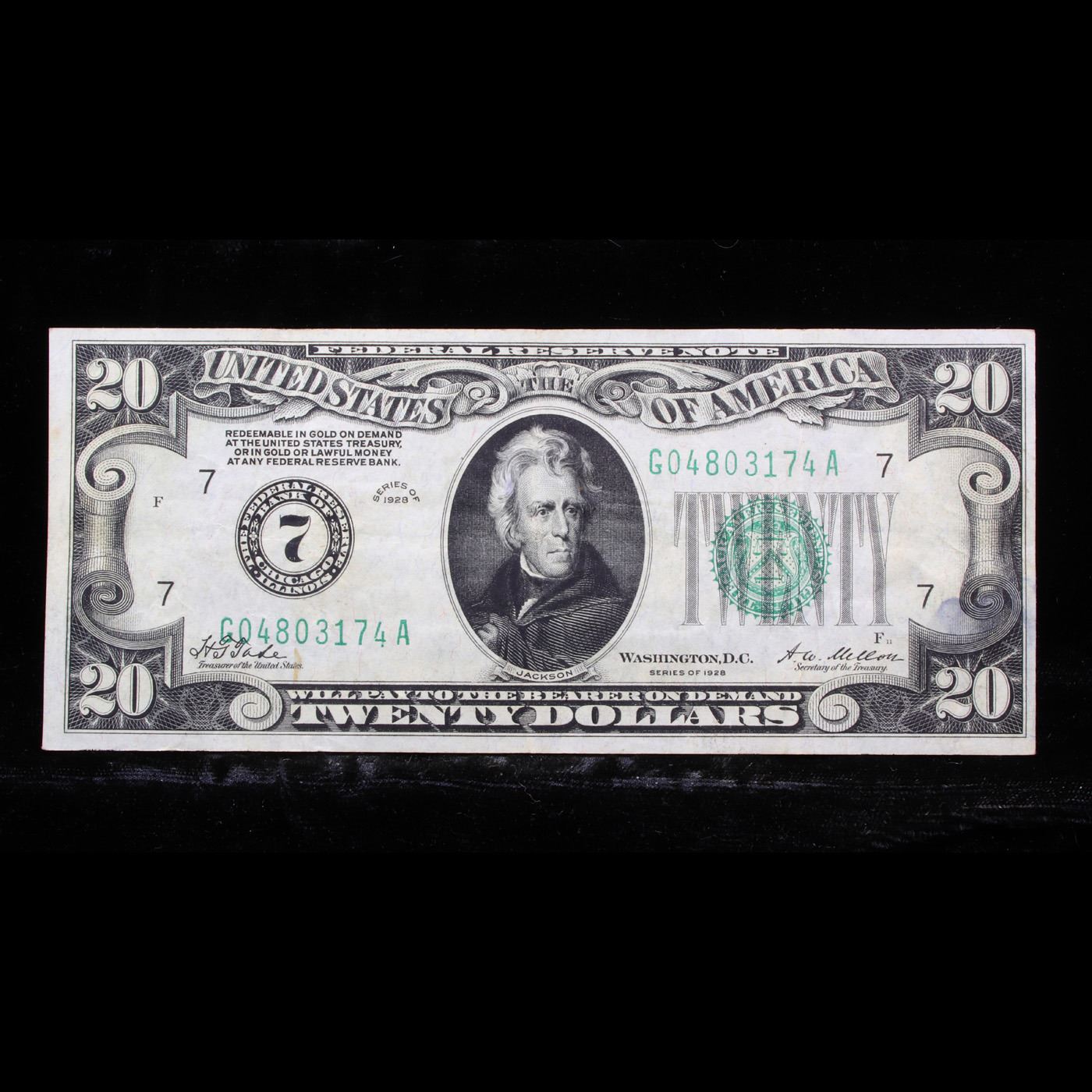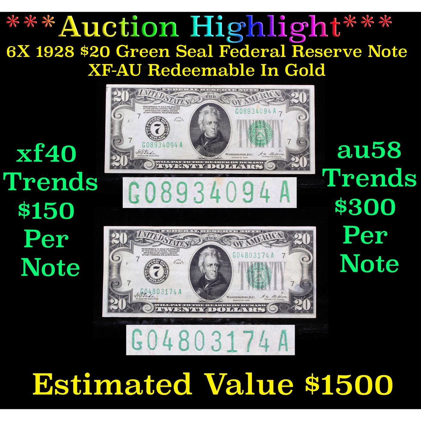 ***Auction Highlight*** 6X 1928 $20 Green Seal Federal Reserve Note XF-AU Redeemable In Gold (fc)
