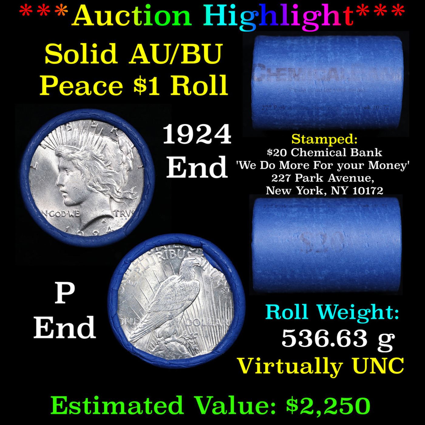 ***Auction Highlight*** AU/BU Slider Bank Of America Peace $1 Roll 1924 & P Ends Virtually UNC (fc)