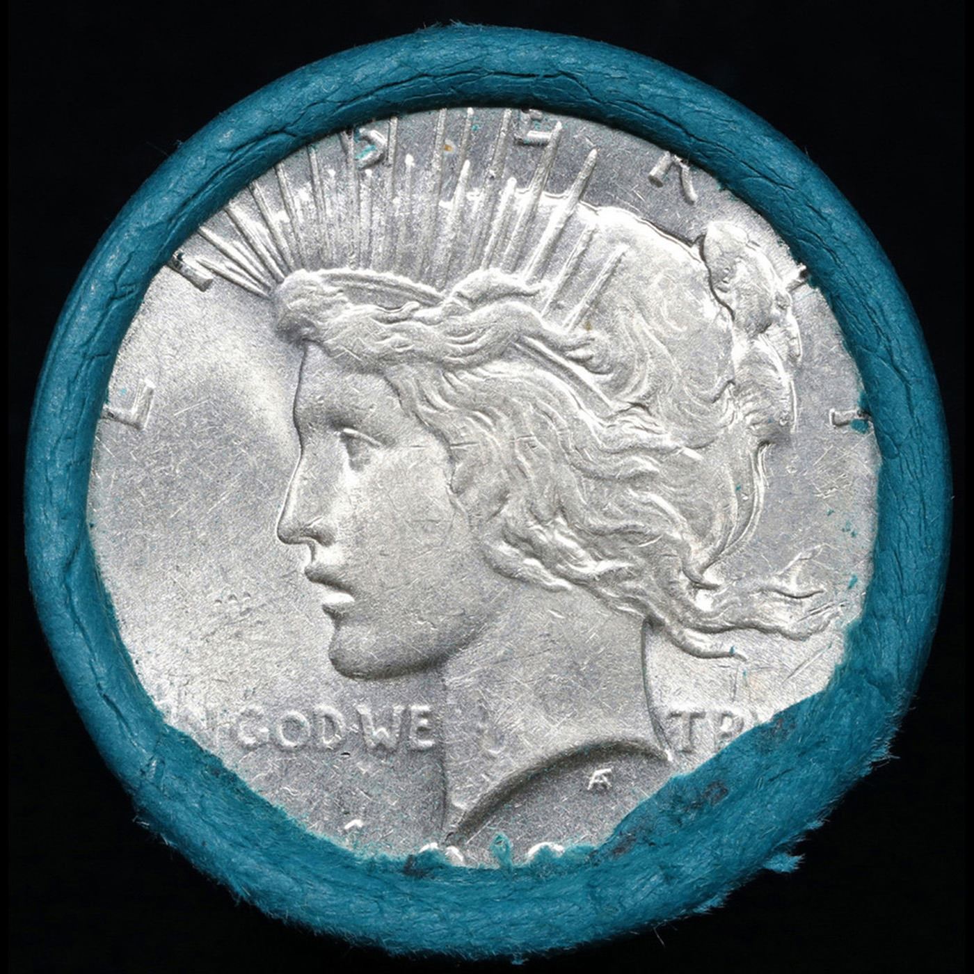 ***Auction Highlight*** AU/BU Slider Bank Of America Peace $1 Roll 1925 & P Ends Virtually UNC. Up For Auction Is a Very Near Solid Uncirculated Peace Dollar Roll In an old First Financial & US Trust Corp, Wall St New York, Johgnson Fare Box Co. Chicago Wrapper with Tight Shotgun Ends. This Roll is filled with Virtually all Uncirculated Silver Dollars. This is how we determined that. A Uncirculated Peace Dollar a Weights 26.73 Grams. So 20 of them would weigh, 534.6 Grams. Our Uncirculated Roll Weighs 536.7 Grams, so the Wrappers weigh 2.1 Grams. The Roll at hand weighs 536.64 Grams. Deducting the Wrapper Weight of 2.1 Grams, the average coin in this roll weights 26.72 Grams. Your going to find in this roll a lot of Uncirculated coins and a few sliders. This is a Very Near Solid roll of Uncirculated Morgan Dollars.