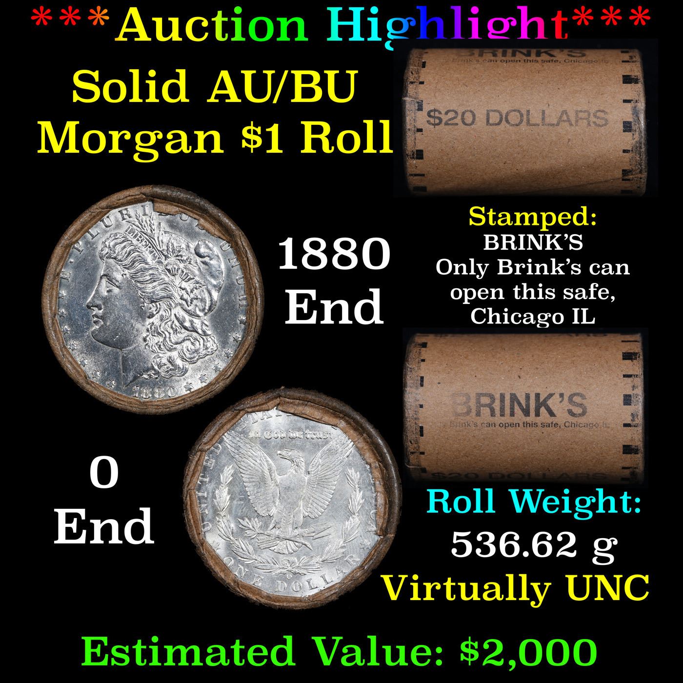 ***Auction Highlight*** AU/BU Slider Brinks Shotgun Morgan $1 Roll 1880 & O Ends Virtually UNC (fc)