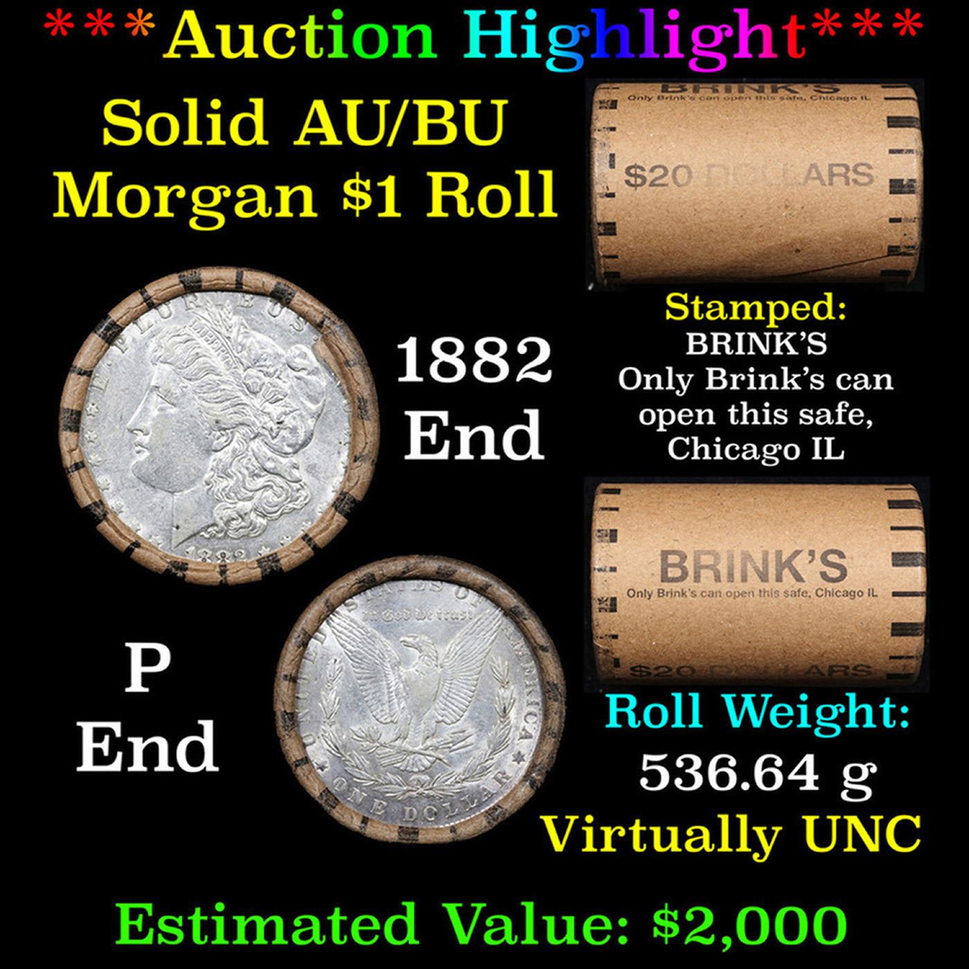 ***Auction Highlight*** AU/BU Slider Brinks Shotgun Morgan $1 Roll 1882 & P Ends Virtually UNC (fc)