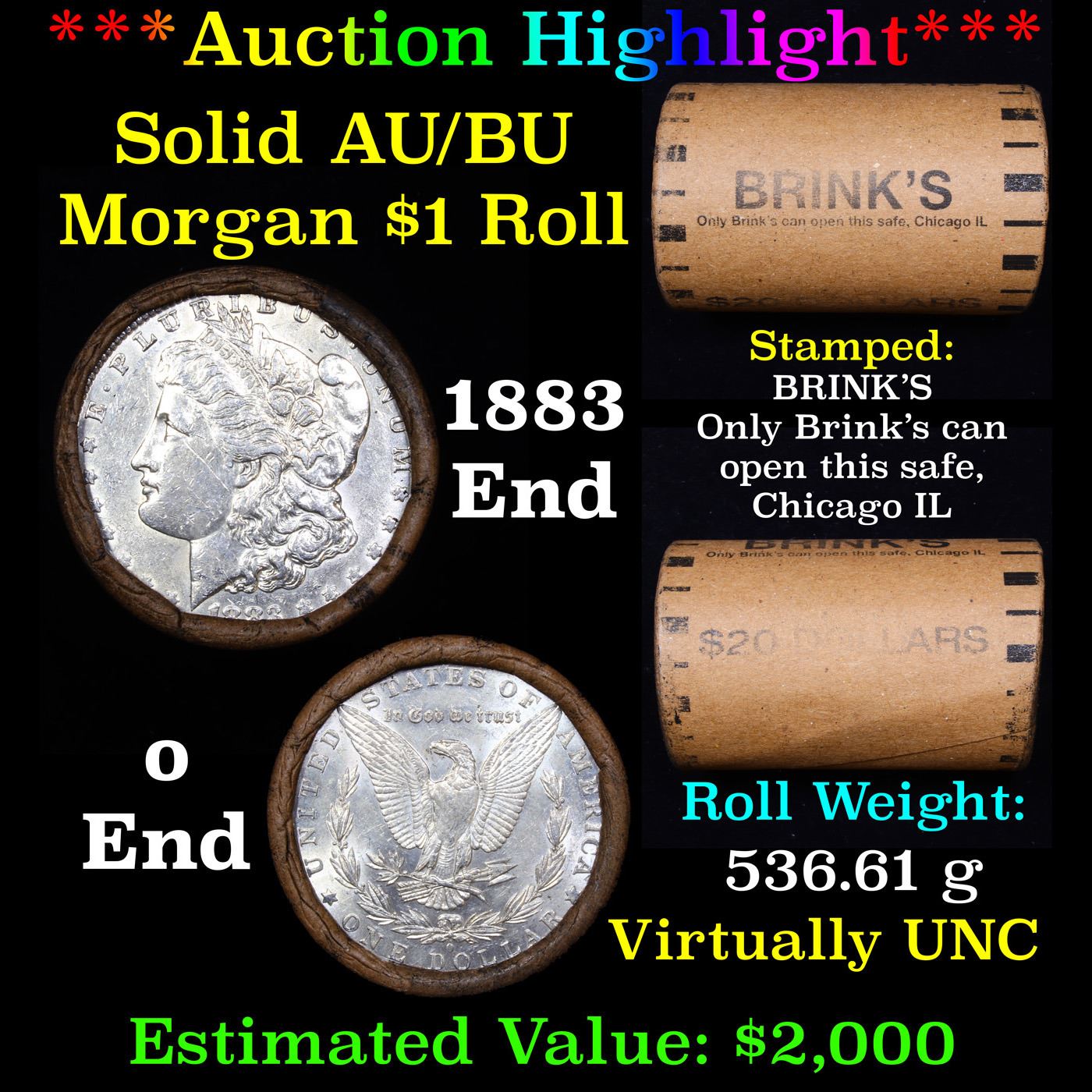 ***Auction Highlight*** AU/BU Slider Brinks Shotgun Morgan $1 Roll 1883 & O Ends Virtually UNC (fc)