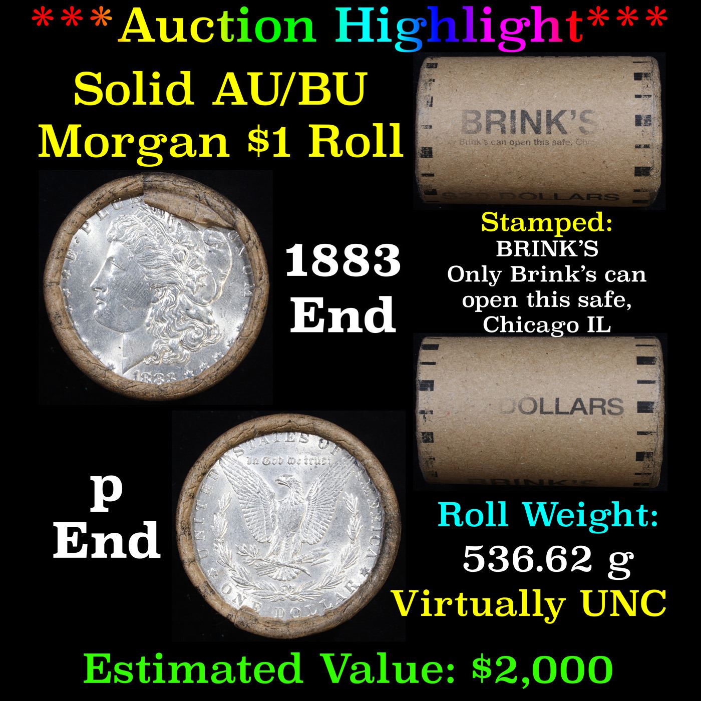 ***Auction Highlight*** AU/BU Slider Brinks Shotgun Morgan $1 Roll 1883 & P Ends Virtually UNC (fc)