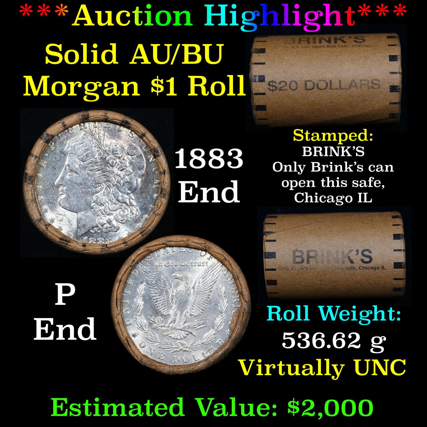 ***Auction Highlight*** AU/BU Slider Brinks Shotgun Morgan $1 Roll 1883 & P Ends Virtually UNC (fc)