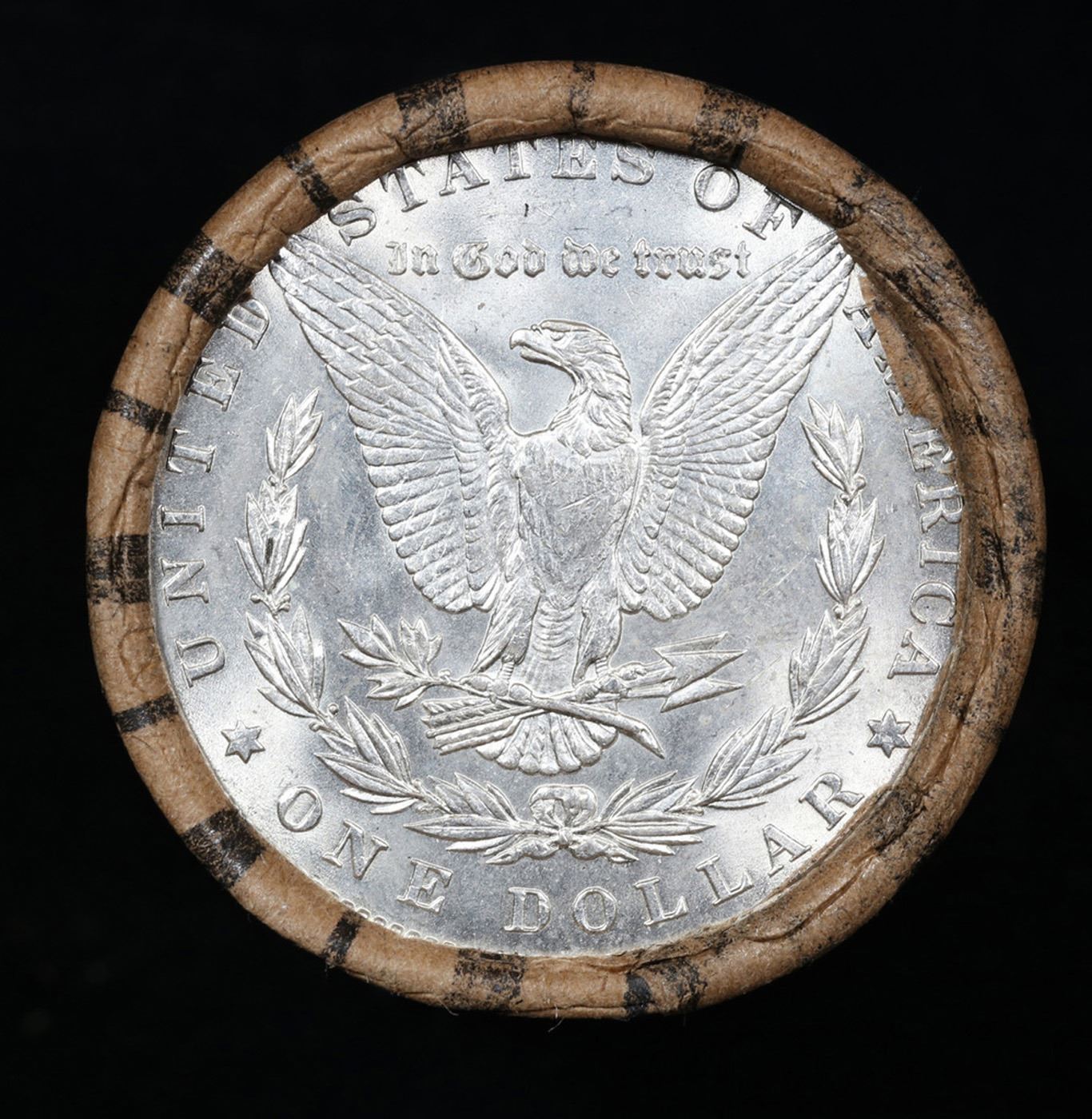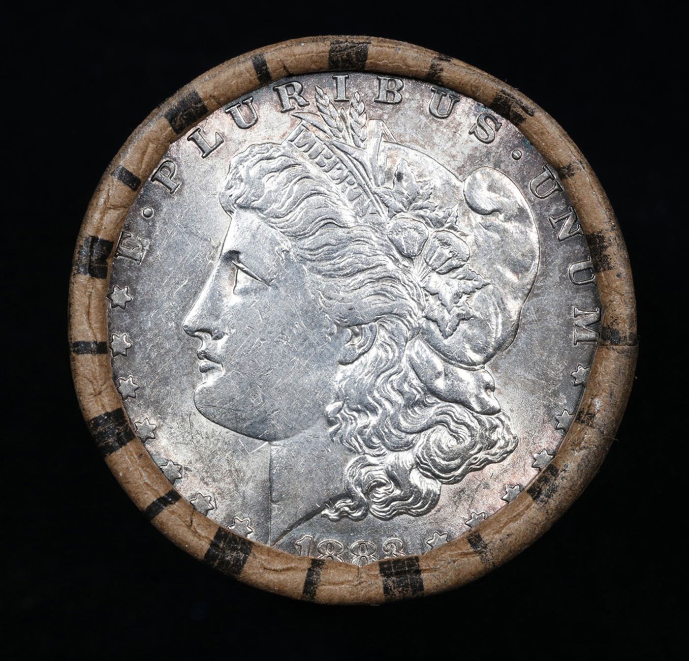 ***Auction Highlight*** AU/BU Slider Brinks Shotgun Morgan $1 Roll 1883 & P Ends Virtually UNC. Up For Auction Is a Very Near Solid Uncirculated Morgan Dollar Roll In an old Brinks Wrapper with Tight Shotgun Ends. This Roll is filled with Virtually all Uncirculated Silver Dollars. This is how we determined that. A Uncirculated Morgan Dollar a Weights 26.73 Grams. So 20 of them would weigh, 534.6 Grams. Our Uncirculated Roll Weighs 536.7 Grams, so the Wrappers weigh 2.1 Grams. The Roll at hand weighs 536.62 Grams. Deducting the Wrapper Weight of 2.1 Grams, the average coin in this roll weights 26.72 Grams. Your going to find in this roll a lot of Uncirculated coins and a few sliders. This is a Very Near Solid roll of Uncirculated Morgan Dollars.