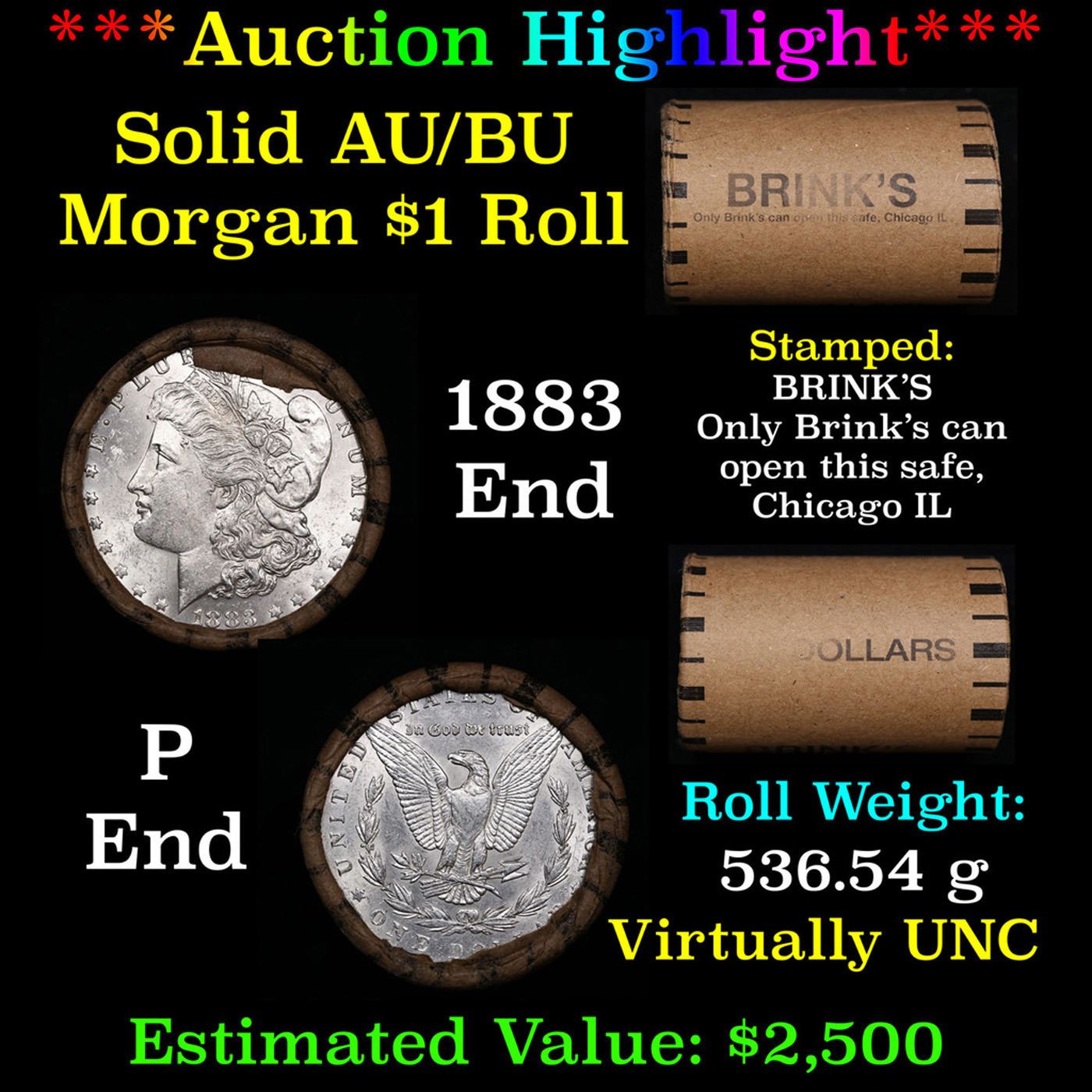 ***Auction Highlight*** AU/BU Slider Brinks Shotgun Morgan $1 Roll 1883 & p Ends Virtually UNC (fc)