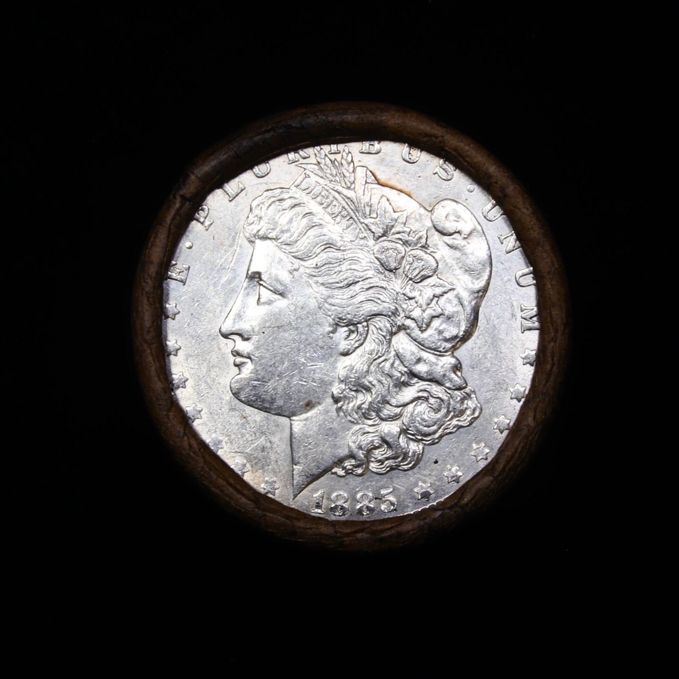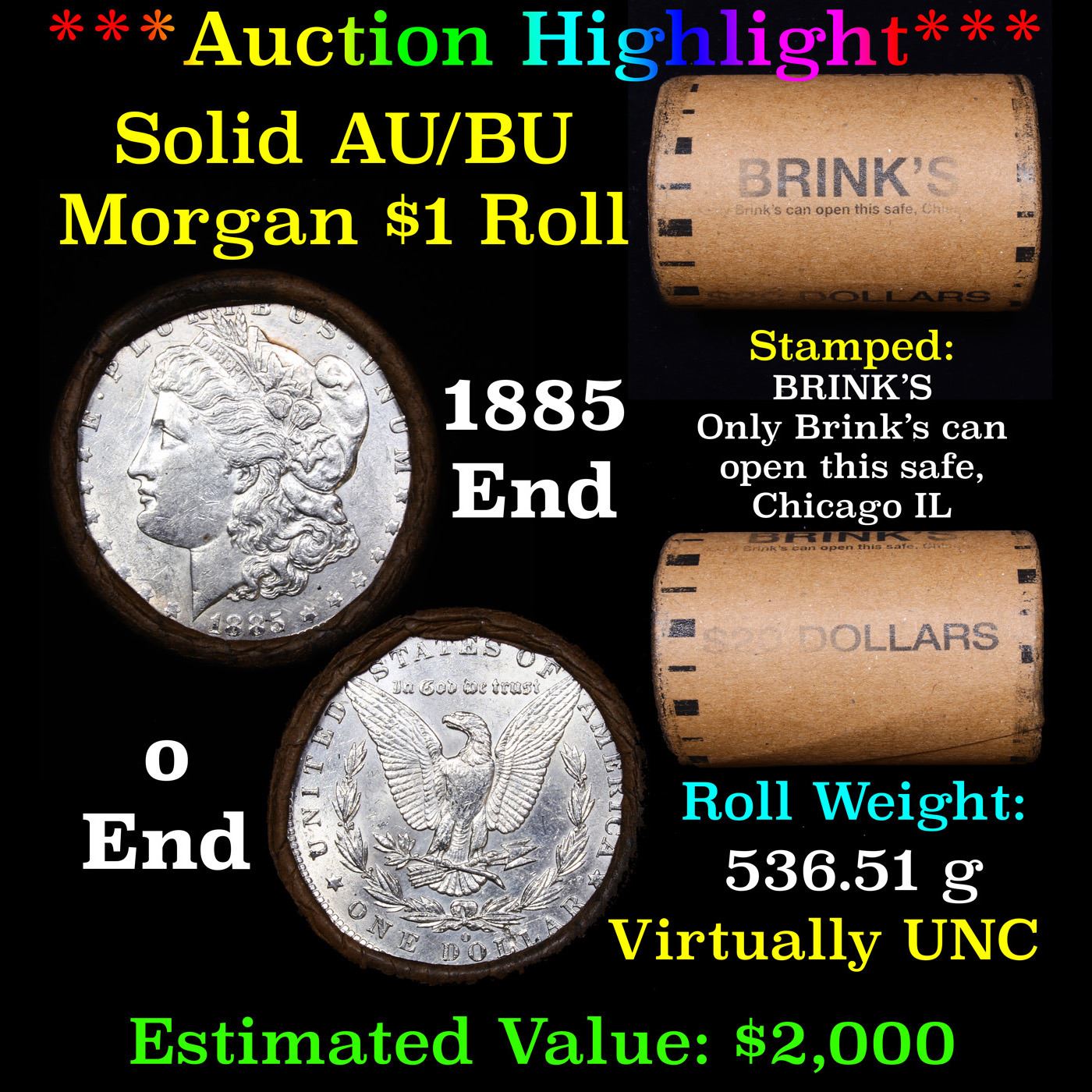 ***Auction Highlight*** AU/BU Slider Brinks Shotgun Morgan $1 Roll 1885 & O Ends Virtually UNC (fc)