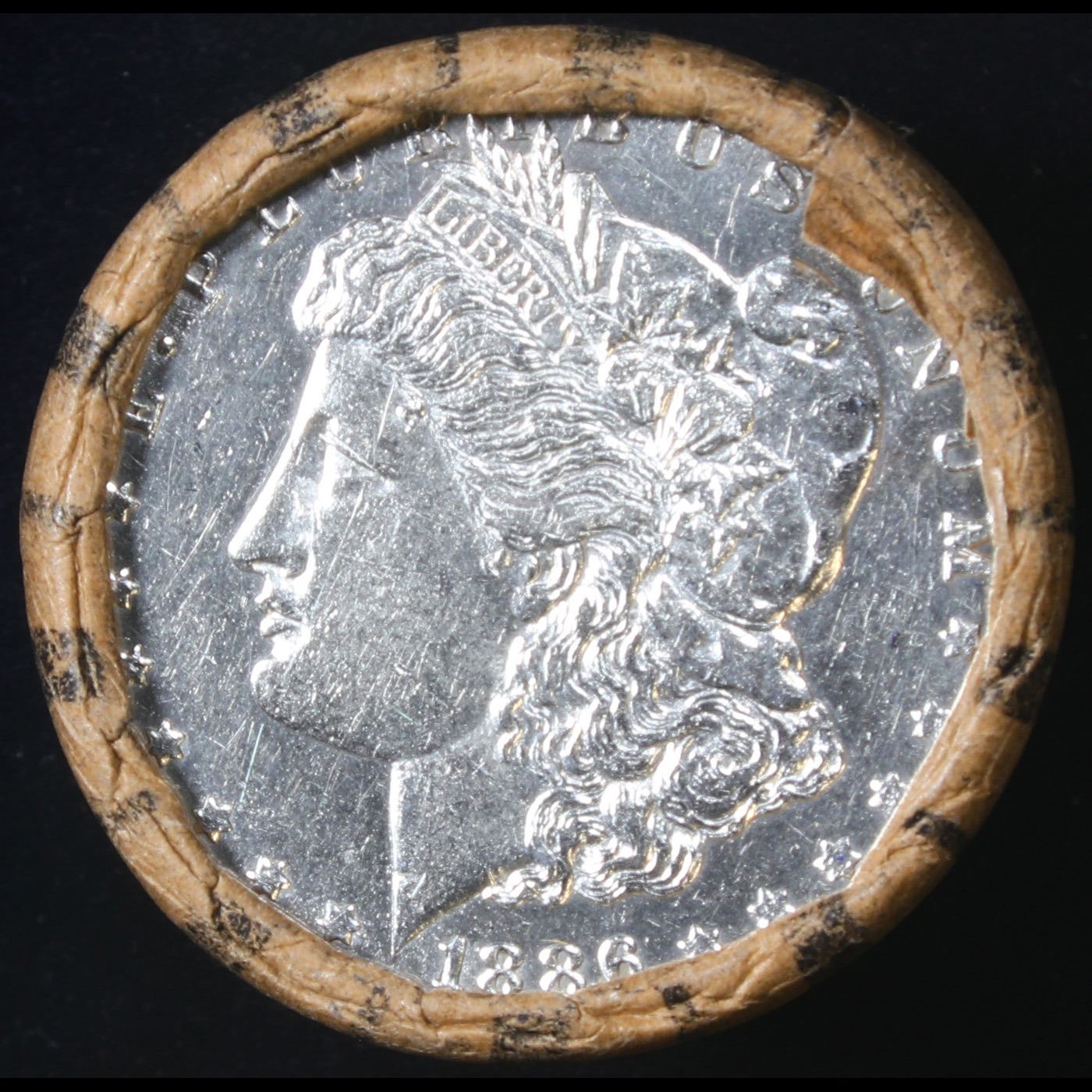 ***Auction Highlight*** AU/BU Slider Brinks Shotgun Morgan $1 Roll 1886 & P Ends Virtually UNC (fc)