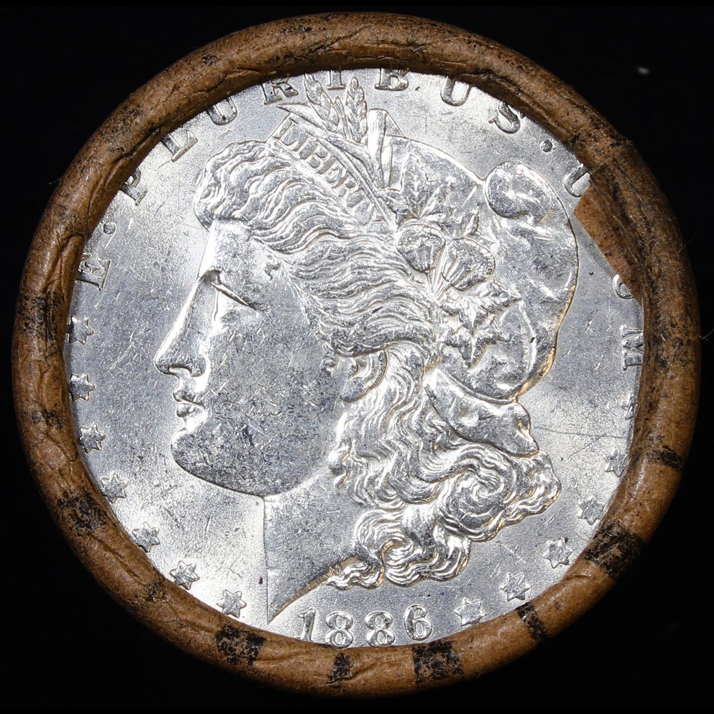 ***Auction Highlight*** AU/BU Slider Brinks Shotgun Morgan $1 Roll 1886 & P Ends Virtually UNC (fc)