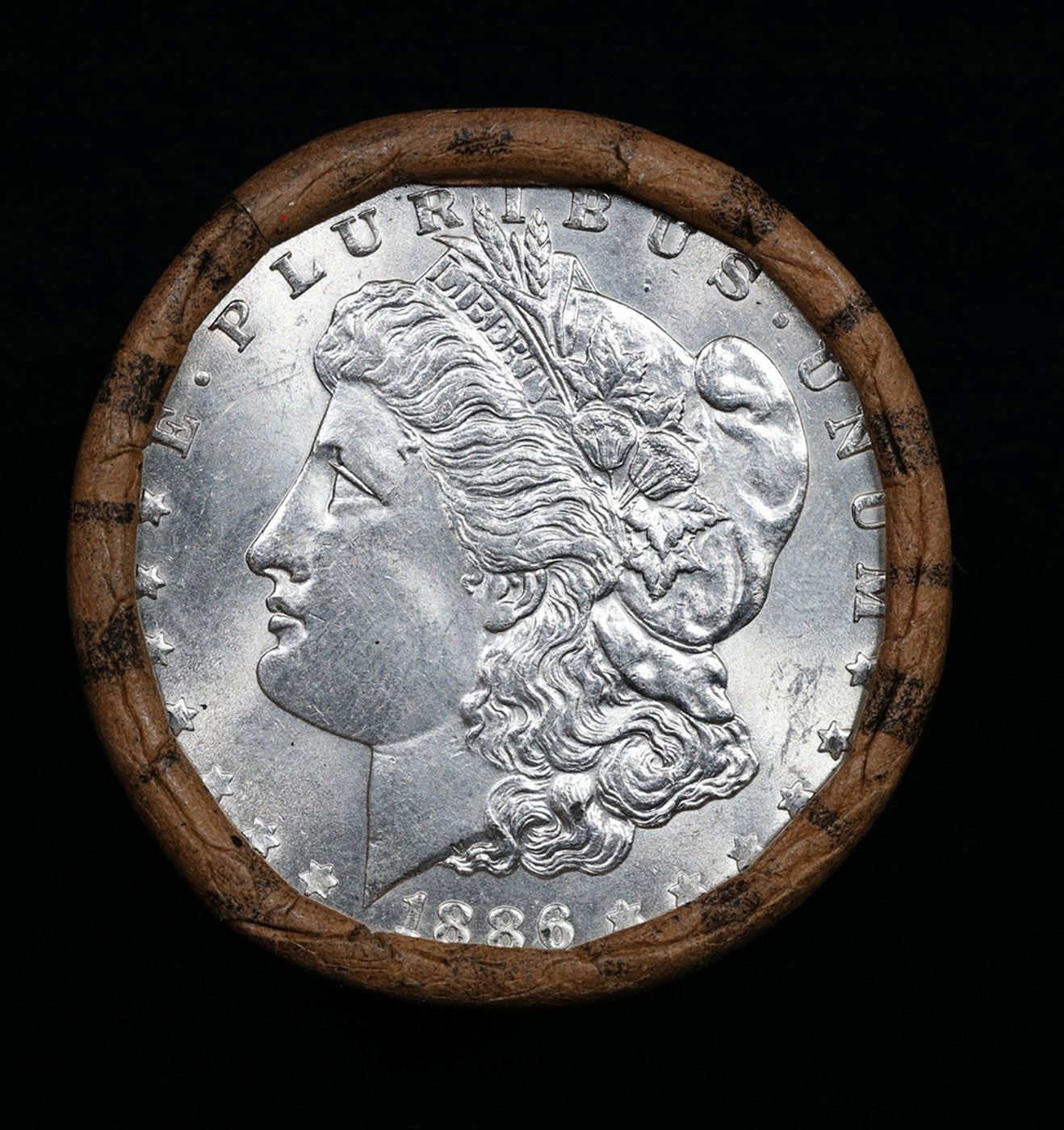 ***Auction Highlight*** AU/BU Slider Brinks Shotgun Morgan $1 Roll 1886 & P Ends Virtually UNC (fc)