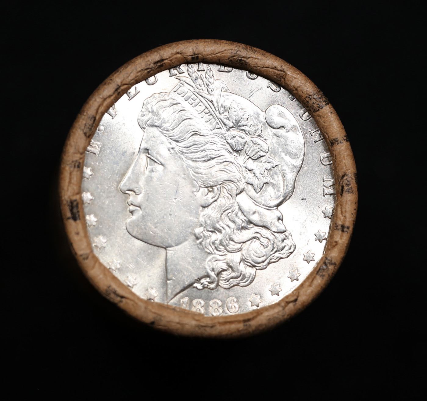 ***Auction Highlight*** AU/BU Slider Brinks Shotgun Morgan $1 Roll 1886 & P Ends Virtually UNC. Up For Auction Is a Very Near Solid Uncirculated Morgan Dollar Roll In an old Brinks Wrapper with Tight Shotgun Ends. This Roll is filled with Virtually all Uncirculated Silver Dollars. This is how we determined that. A Uncirculated Morgan Dollar a Weights 26.73 Grams. So 20 of them would weigh, 534.6 Grams. Our Uncirculated Roll Weighs 536.7 Grams, so the Wrappers weigh 2.1 Grams. The Roll at hand weighs 536.63 Grams. Deducting the Wrapper Weight of 2.1 Grams, the average coin in this roll weights 26.72 Grams. Your going to find in this roll a lot of Uncirculated coins and a few sliders. This is a Very Near Solid roll of Uncirculated Morgan Dollars.