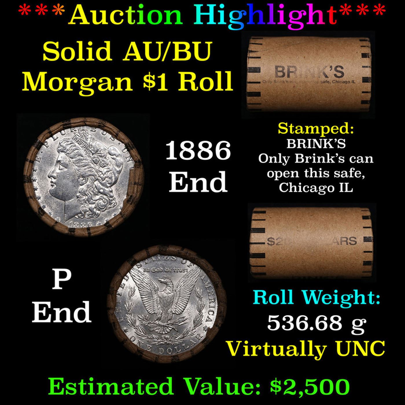 ***Auction Highlight*** AU/BU Slider Brinks Shotgun Morgan $1 Roll 1886 & P Ends Virtually UNC (fc)