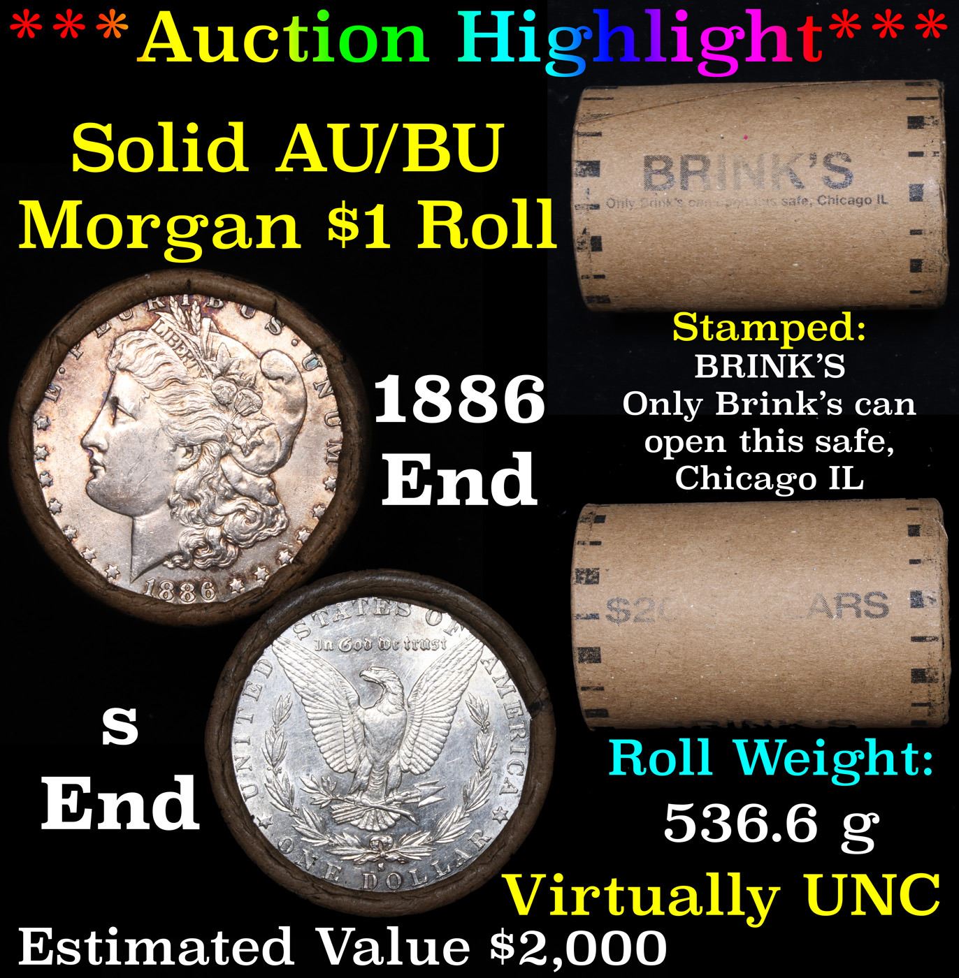 ***Auction Highlight*** AU/BU Slider Brinks Shotgun Morgan $1 Roll 1886 & S Ends Virtually UNC (fc)