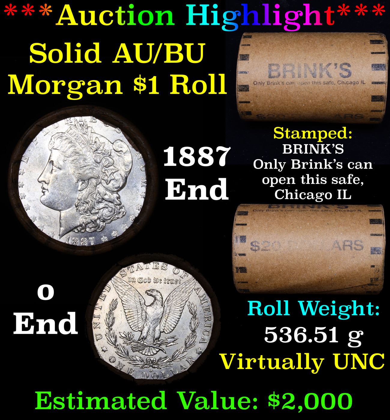 ***Auction Highlight*** AU/BU Slider Brinks Shotgun Morgan $1 Roll 1887 & O Ends Virtually UNC (fc)
