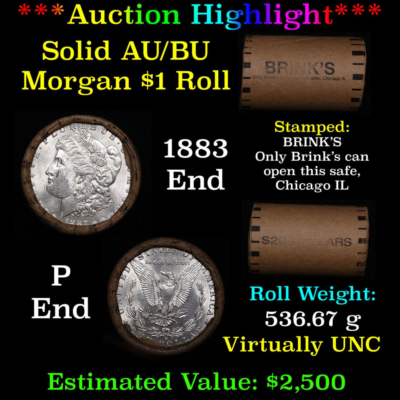 ***Auction Highlight*** AU/BU Slider Brinks Shotgun Morgan $1 Roll 1887 & o Ends Virtually UNC (fc)