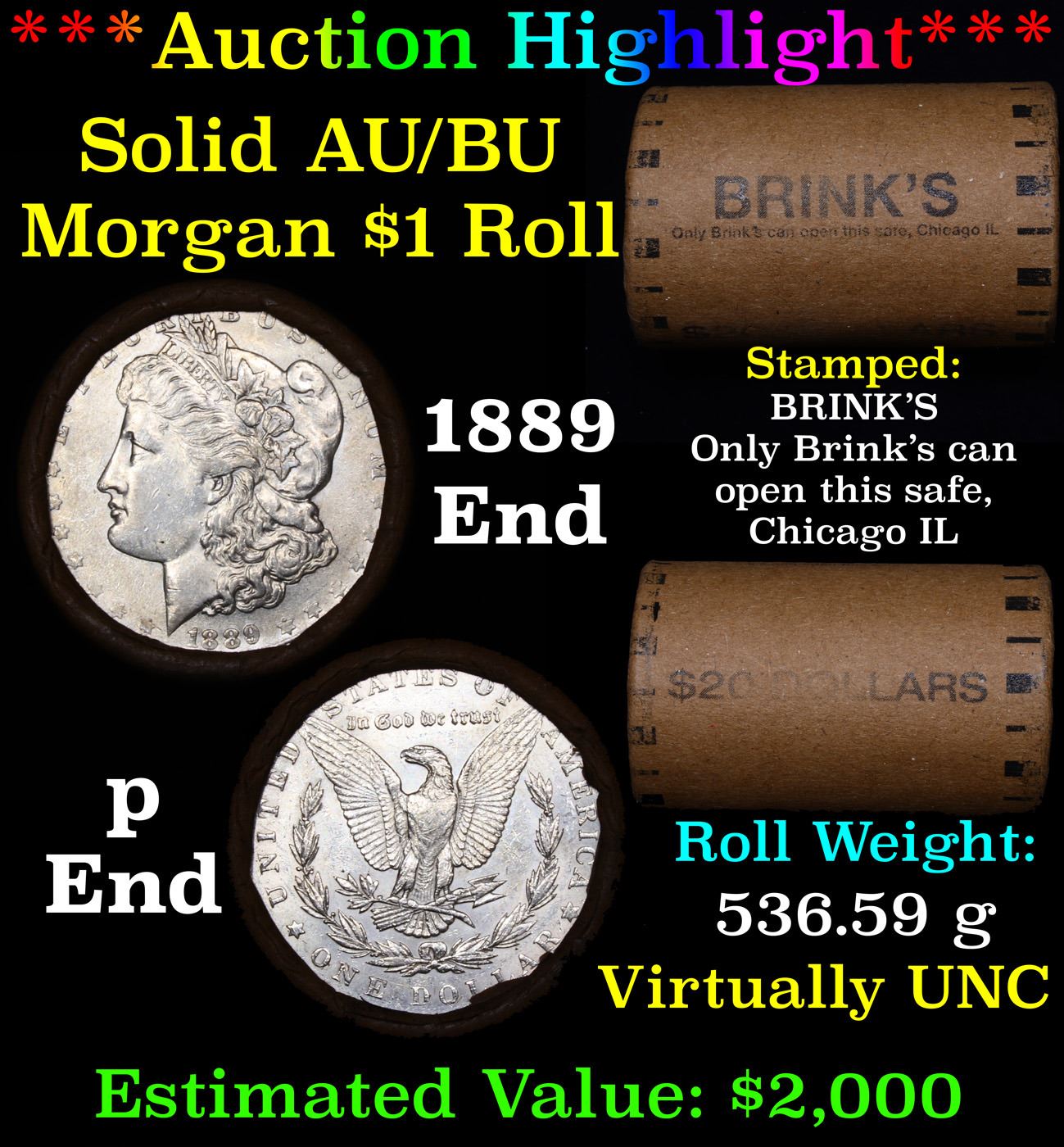 ***Auction Highlight*** AU/BU Slider Brinks Shotgun Morgan $1 Roll 1889 & P Ends Virtually UNC (fc)