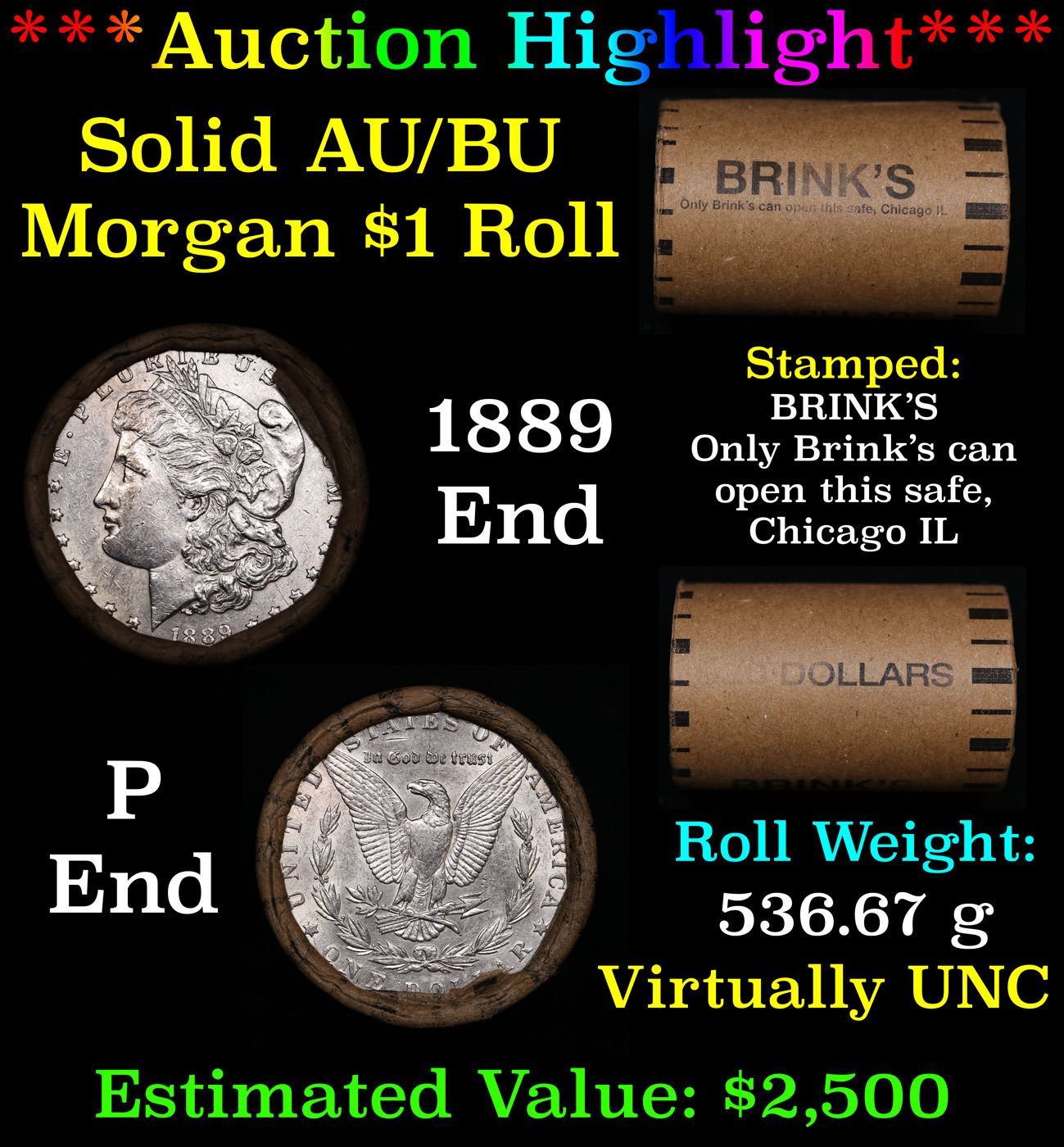 ***Auction Highlight*** AU/BU Slider Brinks Shotgun Morgan $1 Roll 1889 & p Ends Virtually UNC (fc)