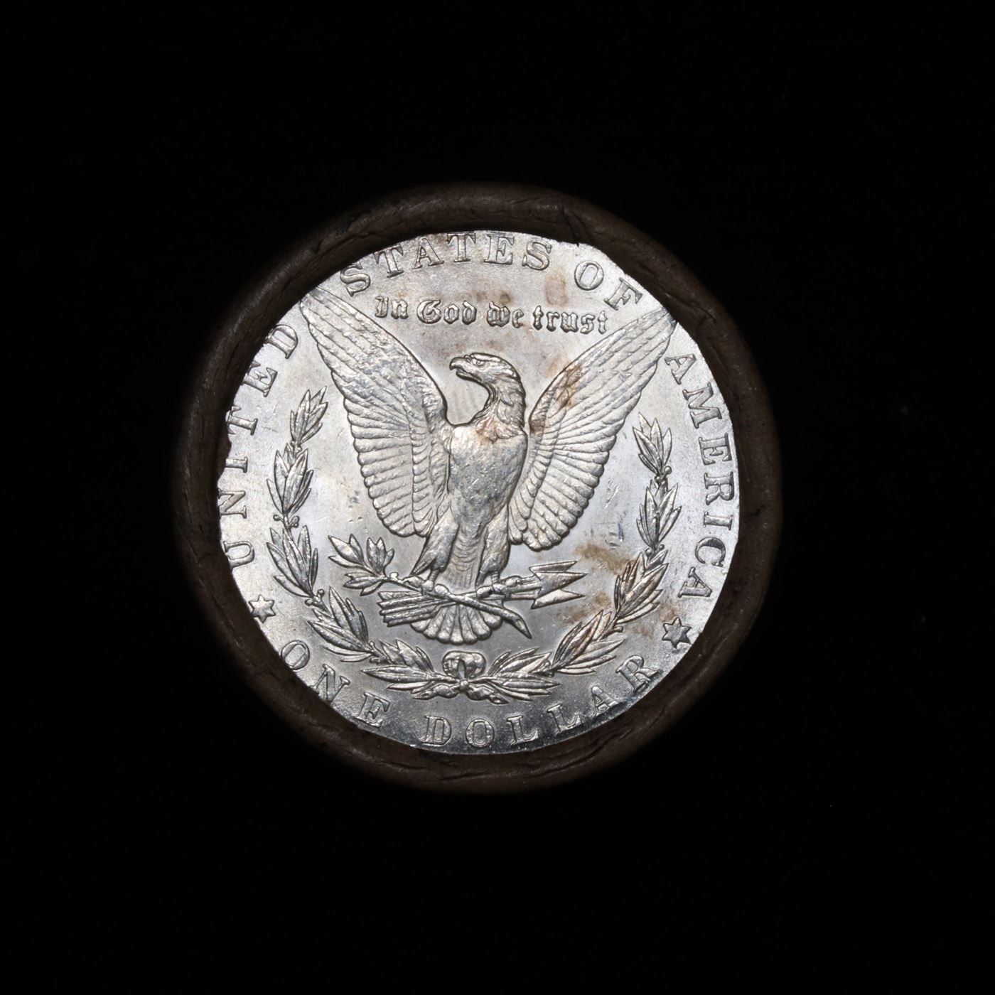 ***Auction Highlight*** AU/BU Slider Brinks Shotgun Morgan $1 Roll 1890 & P Ends Virtually UNC. Up For Auction Is a Very Near Solid Uncirculated Morgan Dollar Roll In an old Brinks Wrapper with Tight Shotgun Ends. This Roll is filled with Virtually all Uncirculated Silver Dollars. This is how we determined that. A Uncirculated Morgan Dollar a Weights 26.73 Grams. So 20 of them would weigh, 534.6 Grams. Our Uncirculated Roll Weighs 536.7 Grams, so the Wrappers weigh 2.1 Grams. The Roll at hand weighs 536.4 Grams. Deducting the Wrapper Weight of 2.1 Grams, the average coin in this roll weights 26.71 Grams. Your going to find in this roll a lot of Uncirculated coins and a few sliders. This is a Very Near Solid roll of Uncirculated Morgan Dollars.