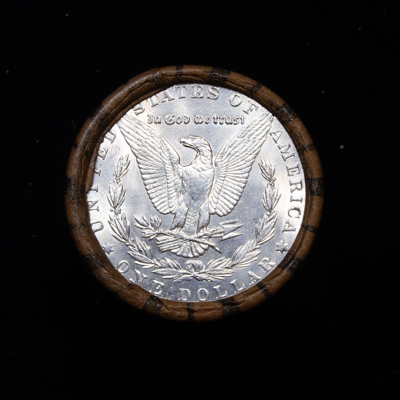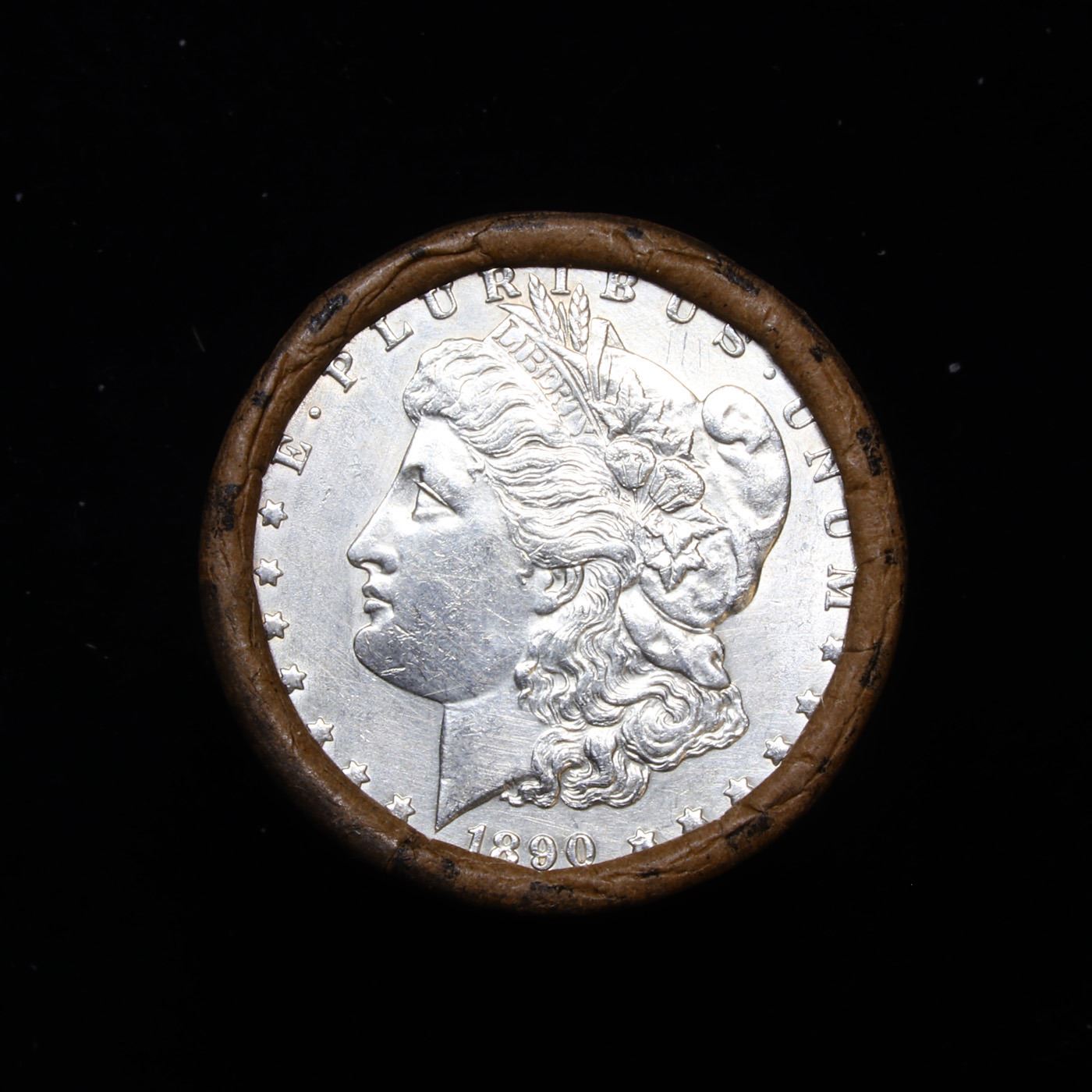 ***Auction Highlight*** AU/BU Slider Brinks Shotgun Morgan $1 Roll 1890 & P Ends Virtually UNC. Up For Auction Is a Very Near Solid Uncirculated Morgan Dollar Roll In an old Brinks Wrapper with Tight Shotgun Ends. This Roll is filled with Virtually all Uncirculated Silver Dollars. This is how we determined that. An Uncirculated Morgan Dollar Weighs 26.73 Grams. So 20 of them would weigh, 534.6 Grams. Our Uncirculated Roll Weighs 536.7 Grams, so the Wrappers weigh 2.1 Grams. The Roll at hand weighs 536.40 Grams. Deducting the Wrapper Weight of 2.1 Grams, the average coin in this roll weights 26.72 Grams. Your going to find in this roll a lot of Uncirculated coins and a few sliders. This is a Very Near Solid roll of Uncirculated Morgan Dollars.