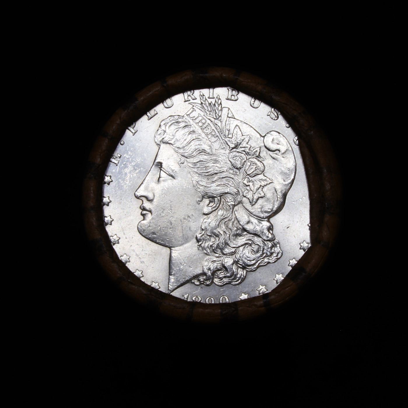 ***Auction Highlight*** AU/BU Slider Brinks Shotgun Morgan $1 Roll 1890 & P Ends Virtually UNC. . Up For Auction Is a Very Near Solid Uncirculated Morgan Dollar Roll In an old Brinks Wrapper with Tight Shotgun Ends. This Roll is filled with Virtually all Uncirculated Silver Dollars. This is how we determined that. An Uncirculated Morgan Dollar Weighs 26.73 Grams. So 20 of them would weigh, 534.6 Grams. Our Uncirculated Roll Weighs 536.7 Grams, so the Wrappers weigh 2.1 Grams. The Roll at hand weighs 536.10 Grams. Deducting the Wrapper Weight of 2.1 Grams, the average coin in this roll weights 26.70 Grams. Your going to find in this roll a lot of Uncirculated coins and a few sliders. This is a Very Near Solid roll of Uncirculated Morgan Dollars.
