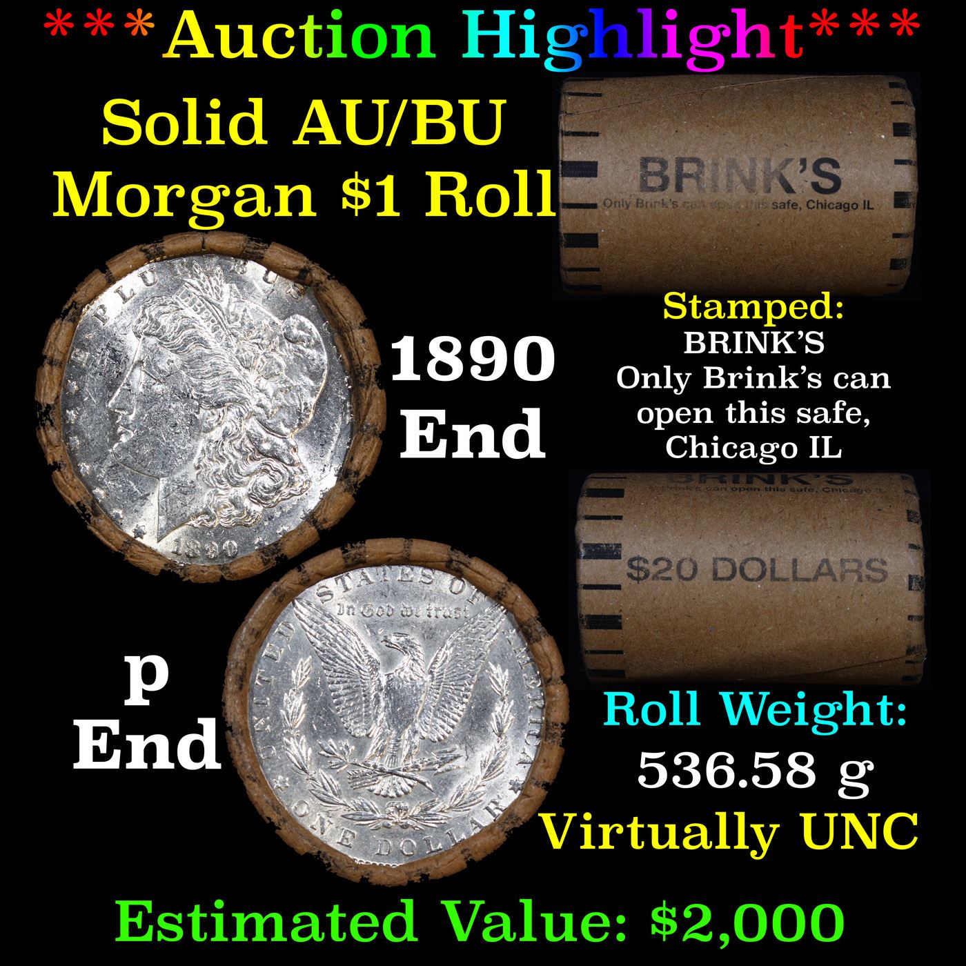 ***Auction Highlight*** AU/BU Slider Brinks Shotgun Morgan $1 Roll 1890 & P Ends Virtually UNC (fc)