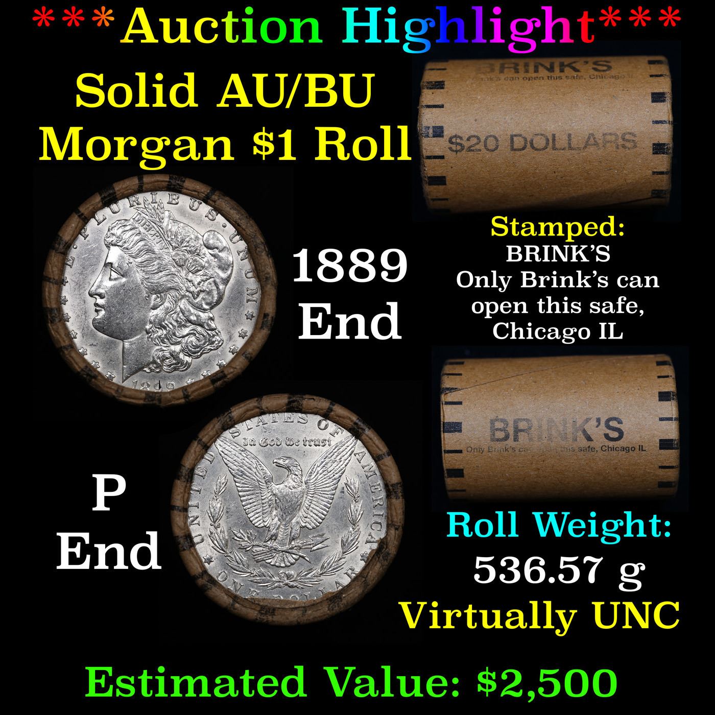 ***Auction Highlight*** AU/BU Slider Brinks Shotgun Morgan $1 Roll 1899 & P Ends Virtually UNC (fc)