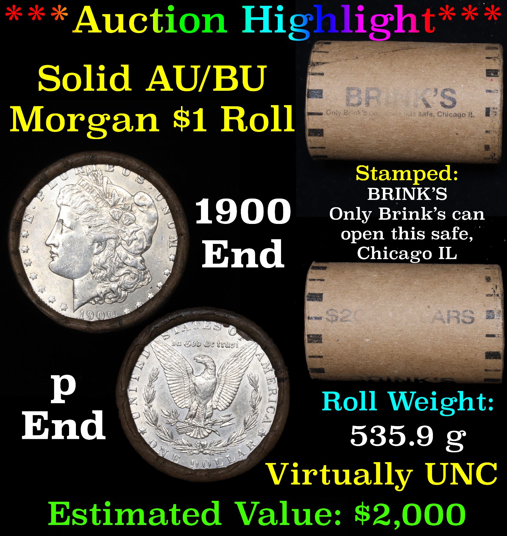 ***Auction Highlight*** AU/BU Slider Brinks Shotgun Morgan $1 Roll 1900 & P Ends Virtually UNC (fc)