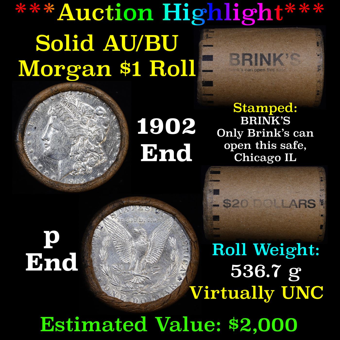 ***Auction Highlight*** AU/BU Slider Brinks Shotgun Morgan $1 Roll 1902 & P Ends Virtually UNC (fc)