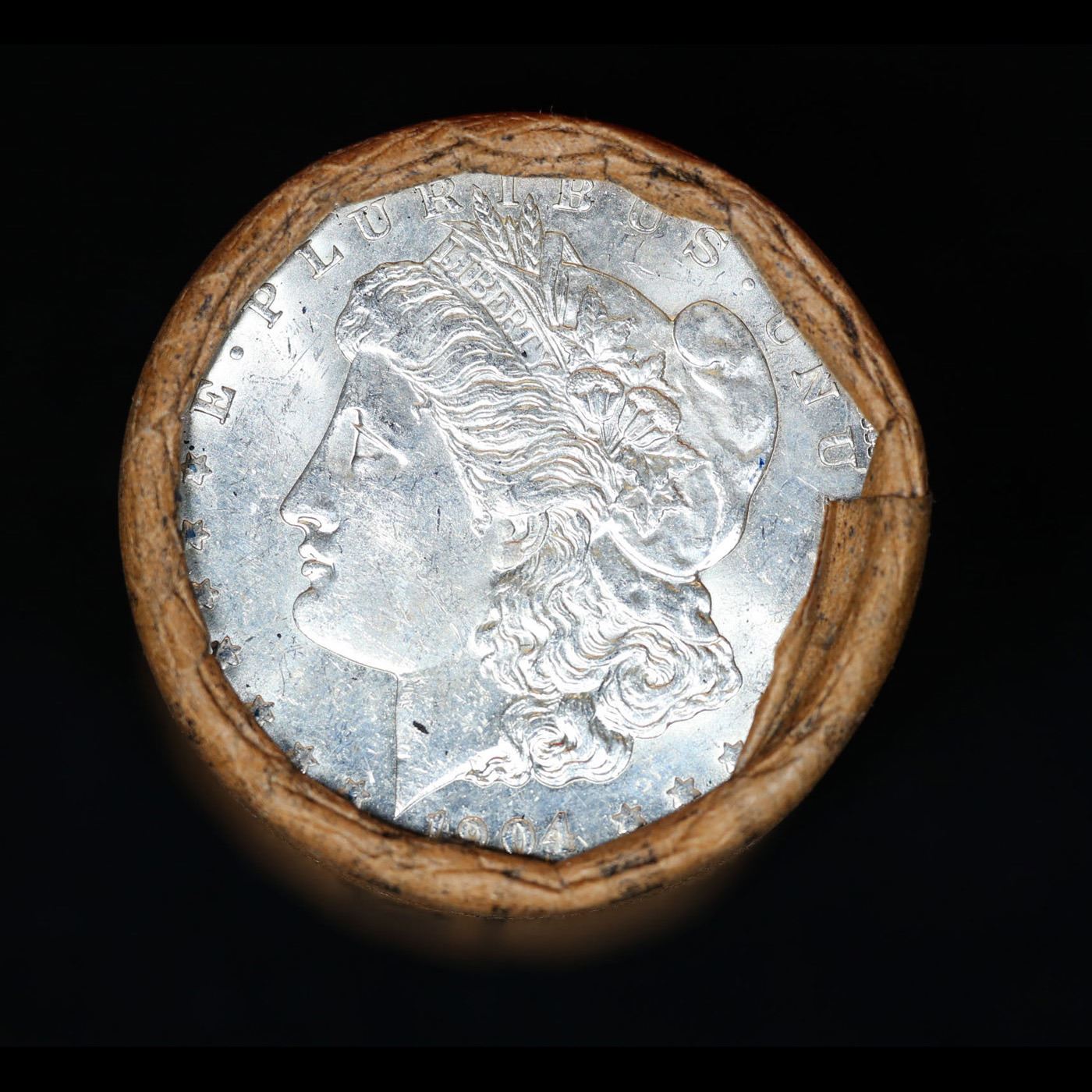 ***Auction Highlight*** AU/BU Slider Brinks Shotgun Morgan $1 Roll 1904 & P Ends Virtually UNC. Up For Auction Is a Very Near Solid Uncirculated Morgan Dollar Roll In an old Brinks Wrapper with Tight Shotgun Ends. This Roll is filled with Virtually all Uncirculated Silver Dollars. This is how we determined that. A Uncirculated Morgan Dollar a Weights 26.73 Grams. So 20 of them would weigh, 534.6 Grams. Our Uncirculated Roll Weighs 536.7 Grams, so the Wrappers weigh 2.1 Grams. The Roll at hand weighs 536.62 Grams. Deducting the Wrapper Weight of 2.1 Grams, the average coin in this roll weights 26.72 Grams. Your going to find in this roll a lot of Uncirculated coins and a few sliders. This is a Very Near Solid roll of Uncirculated Morgan Dollars.