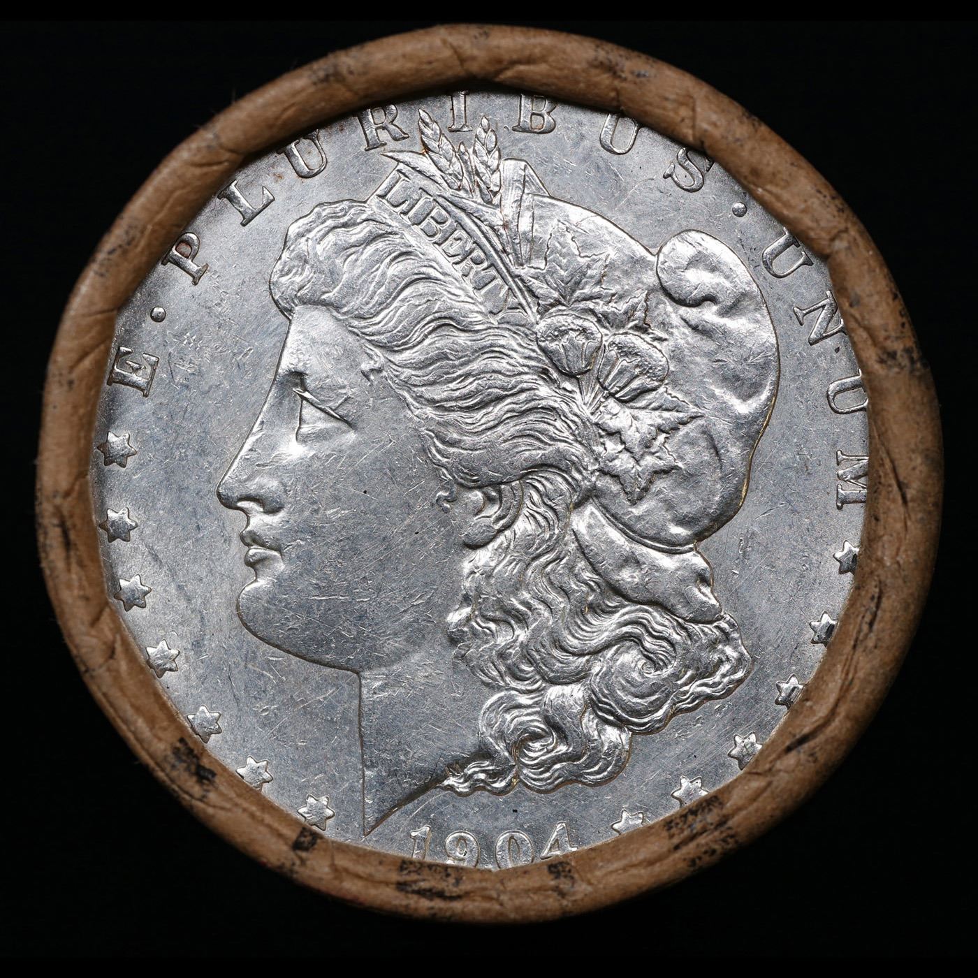 ***Auction Highlight*** AU/BU Slider Brinks Shotgun Morgan $1 Roll 1904 & S Ends Virtually UNC (fc)